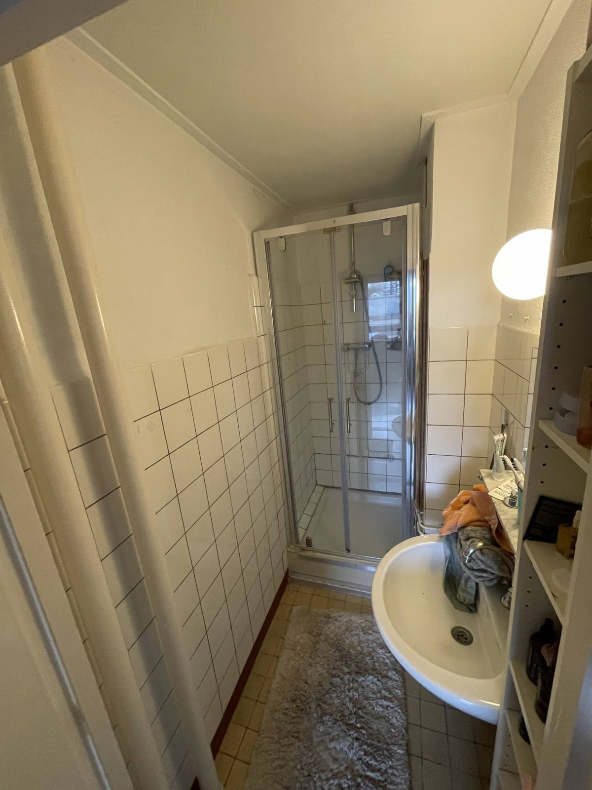 De badkamer is uitgerust met een douche en wastafel. Het toilet is separaat.