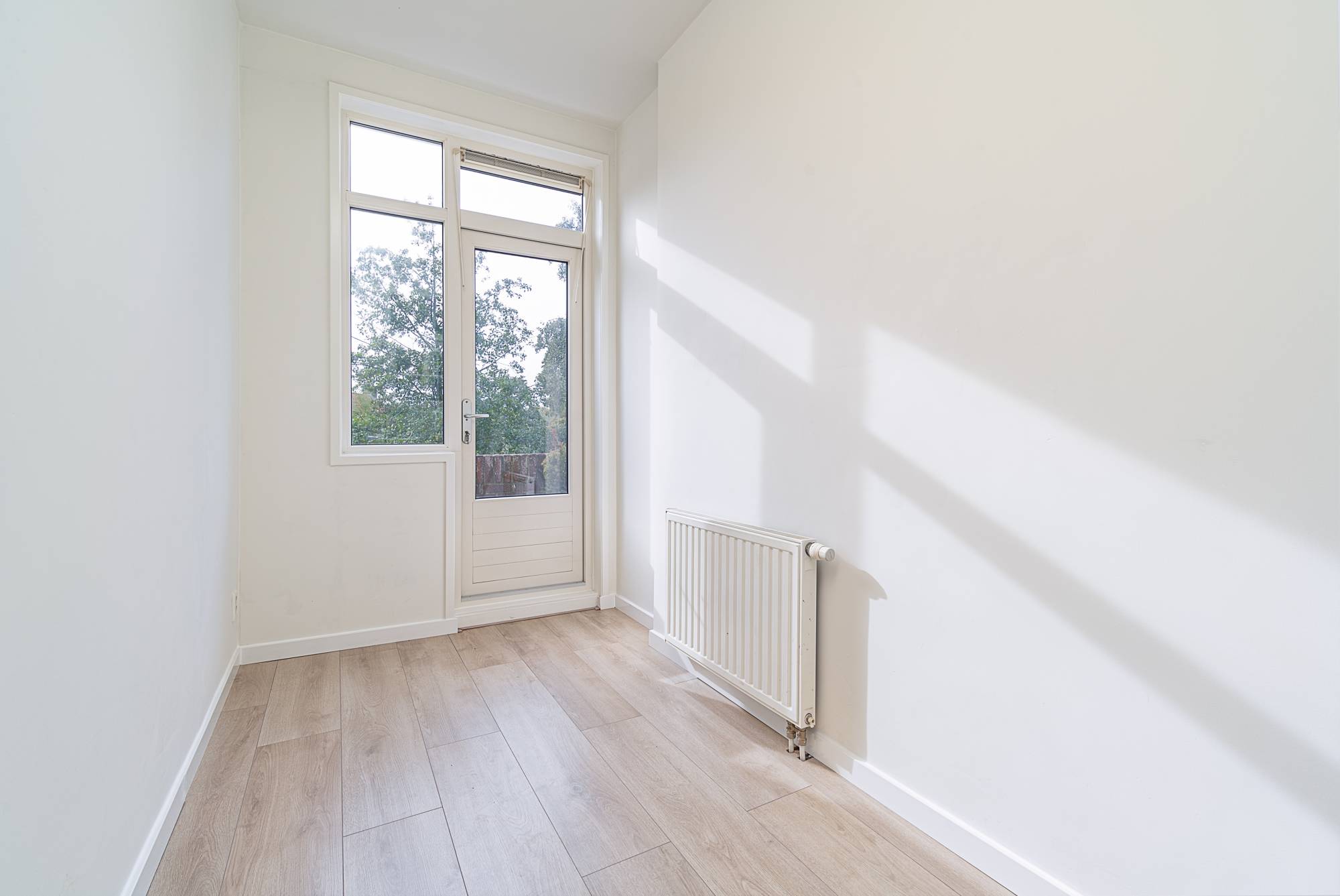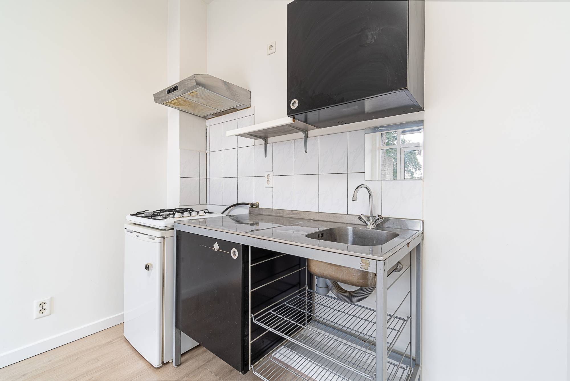 De woon- en slaapkamer hebben een praktische, rechte indeling, waardoor je de ruimtes efficiënt kunt inrichten en optimaal kunt benutten. Het appartement bevindt zich op de eerste etage, aan de achterzijde van het pand. Je beschikt over een eigen keuken en badkamer. De slaapkamer ligt aan de rechterzijde van de woning en is afgescheiden van het woongedeelte.