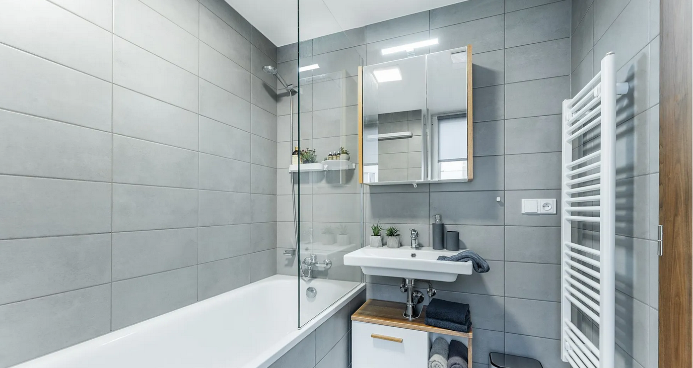 Het appartement is voorzien van een nieuwe, moderne keuken met een ingebouwd fornuis, oven, afzuigkap en vaatwasser.
