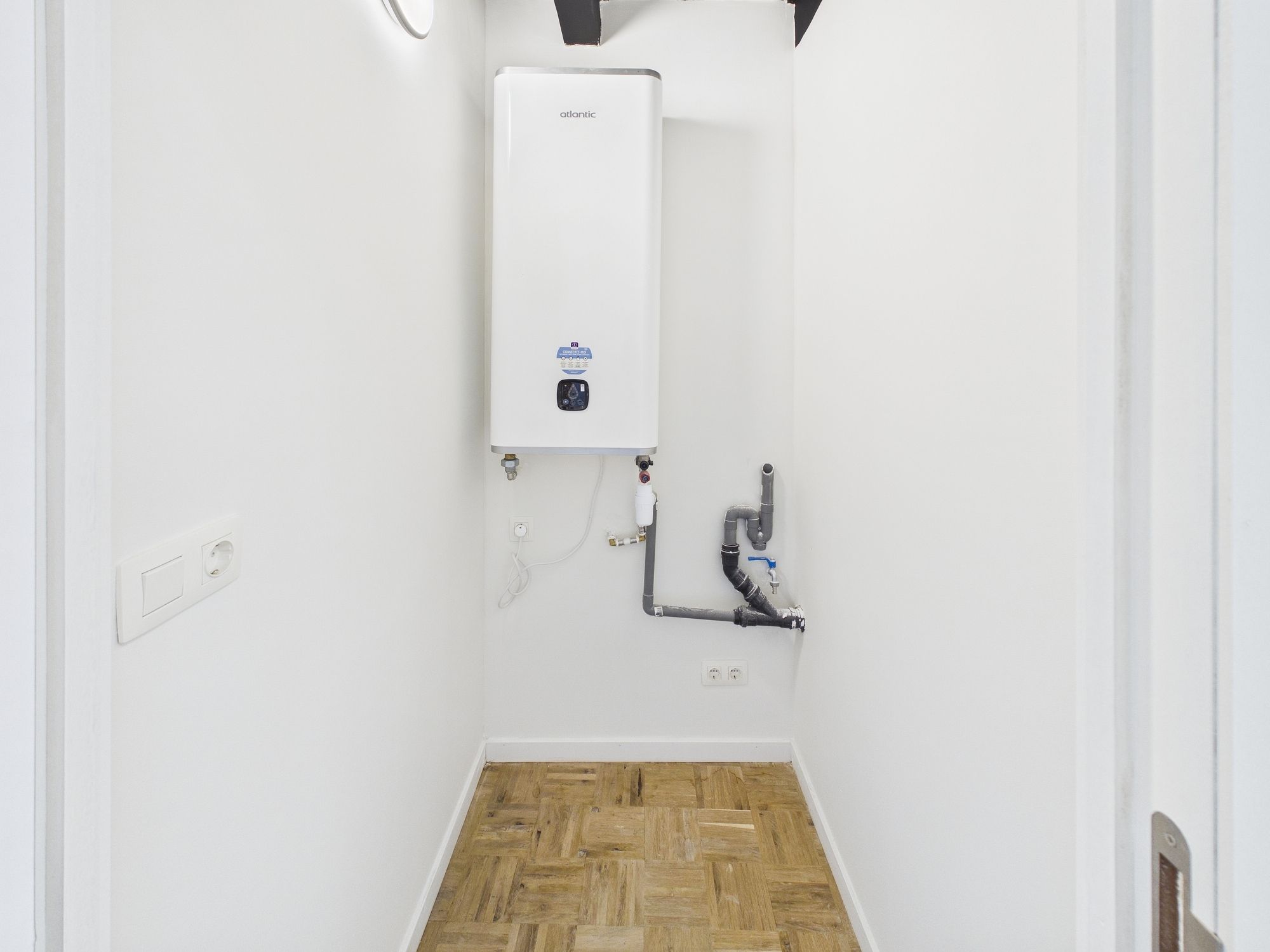 Inkomhal met toegang tot de woonkamer en keuken. De nieuwe keuken beschikt over alle benodigde inbouwapparatuur; een elektrische kookplaat, afzuigkap, oven en vaatwasser. Naast de keuken vind je een aparte toiletruimte en het cv-hok met hierin de aansluiting voor de wasmachine. Aan de voorzijde van het gebouw bevindt zich de slaapkamer met aansluitend de badkamer.