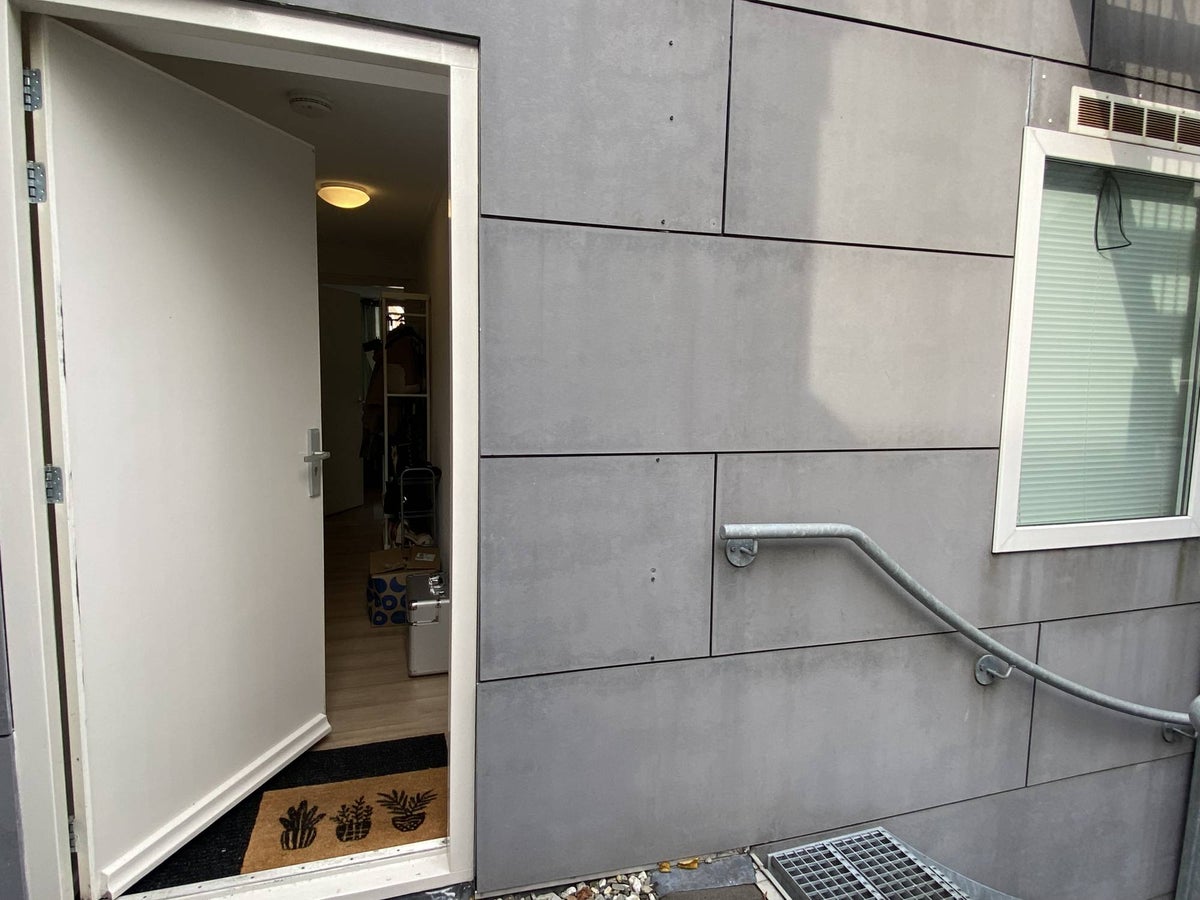 Begane grond: entree met toegang tot (gezamenlijke) overdekte fietsenstalling en trapopgang naar 1e verdieping.
