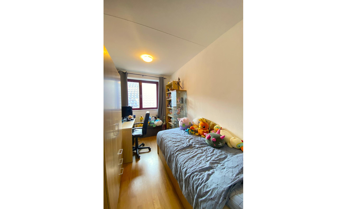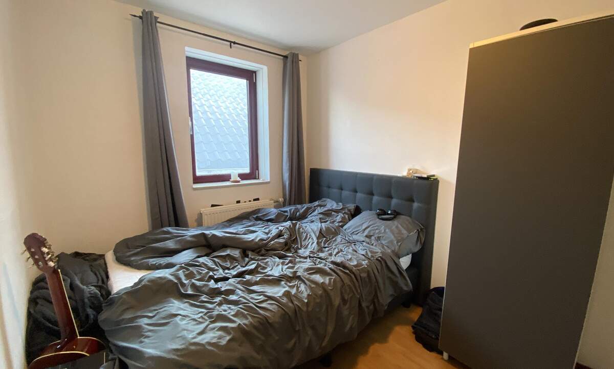 Slaapkamers bereikbaar via de woonkamer. Badkamer met douche, wastafel, toilet en aansluiting op de wasmachine.