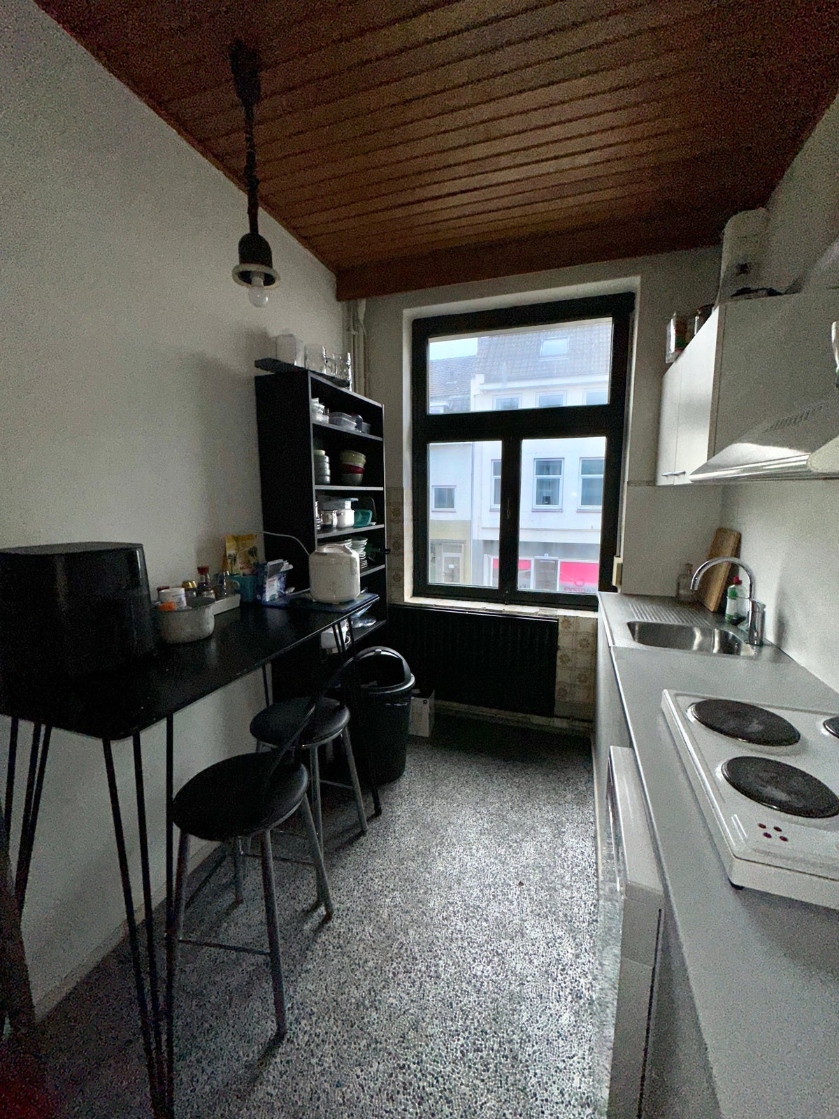 Gemeenschappeijke keuken en badkamer gedeeld met 3 jongens.