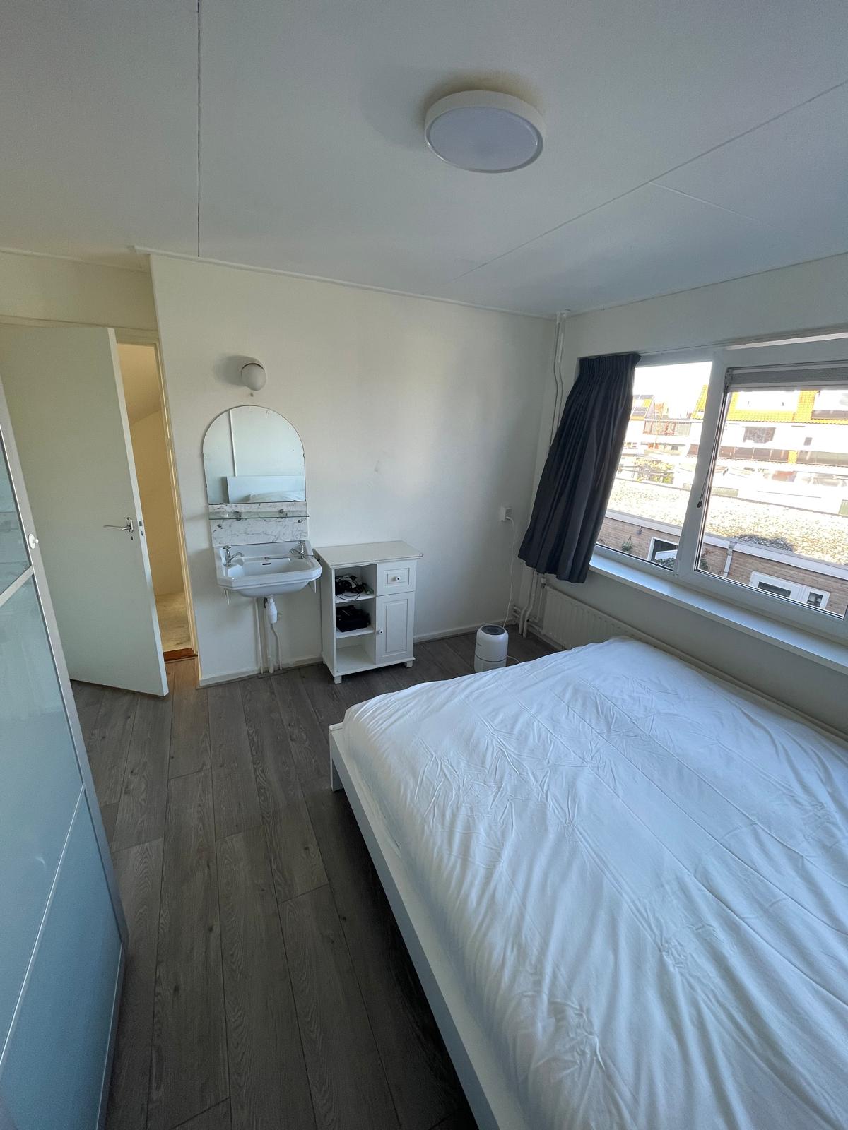 De kamer is volledig gemeubileerd, hierin is: bed, wastafel, spiegel en een kledingkast.
