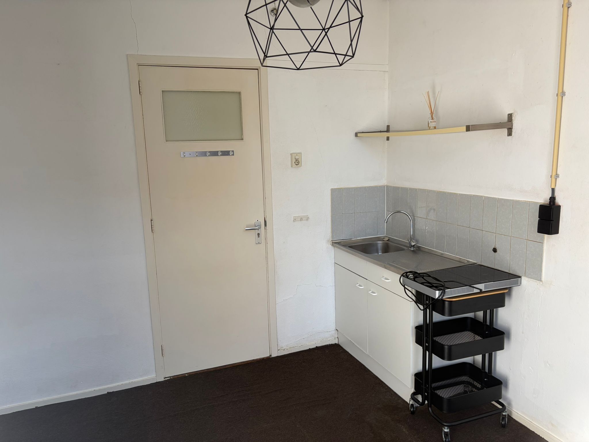 Een kookplaatje en wat pannetjes horen bij de kamer.