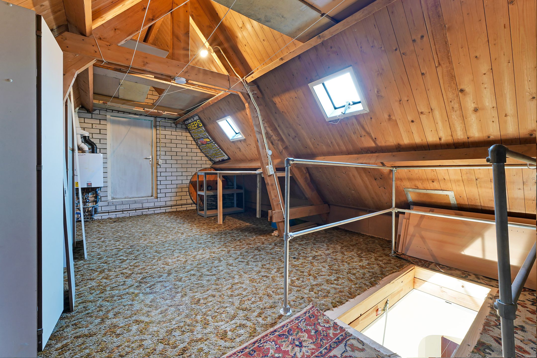 Via een vlizotrap in de woonkamer bereikt u een ruime zolderkamer met toegang tot een groot dakterras.