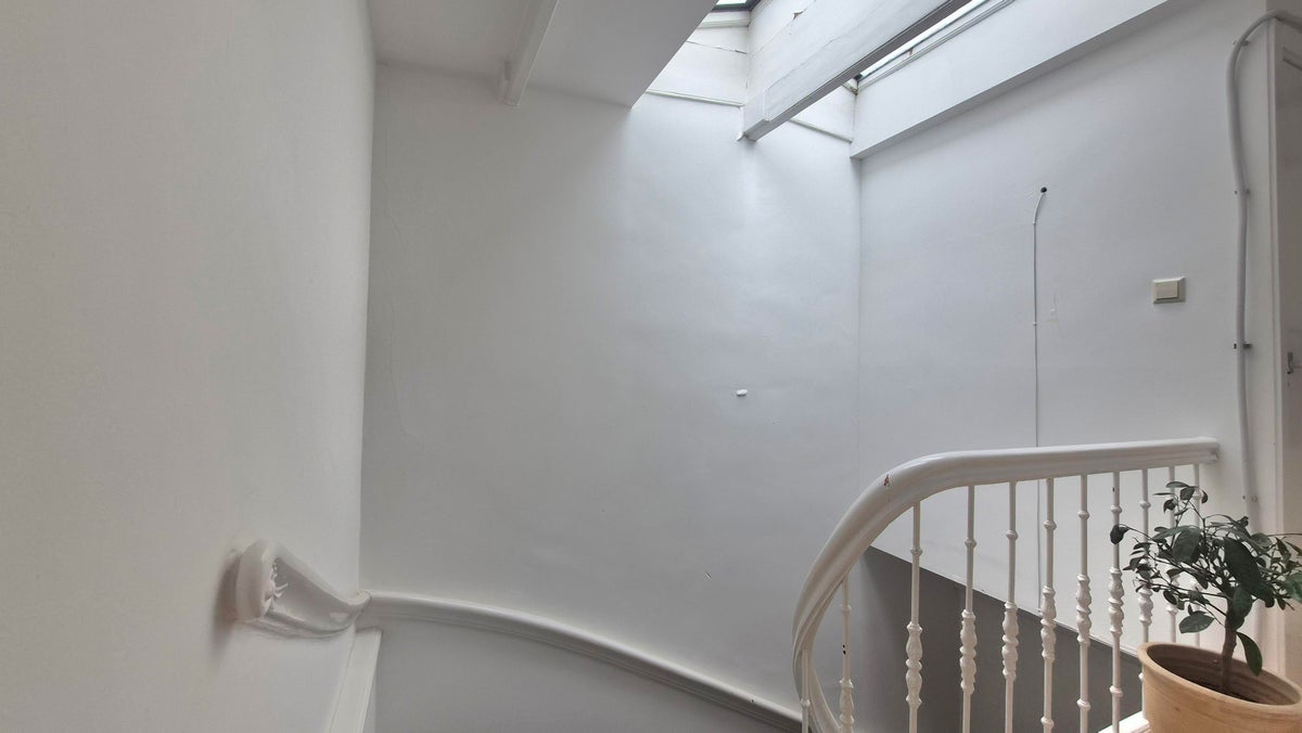 Gemeenschappelijke voordeur op straatniveau, trap naarde derde etage, met de private voordeur van het appartement aan de achterzijde.