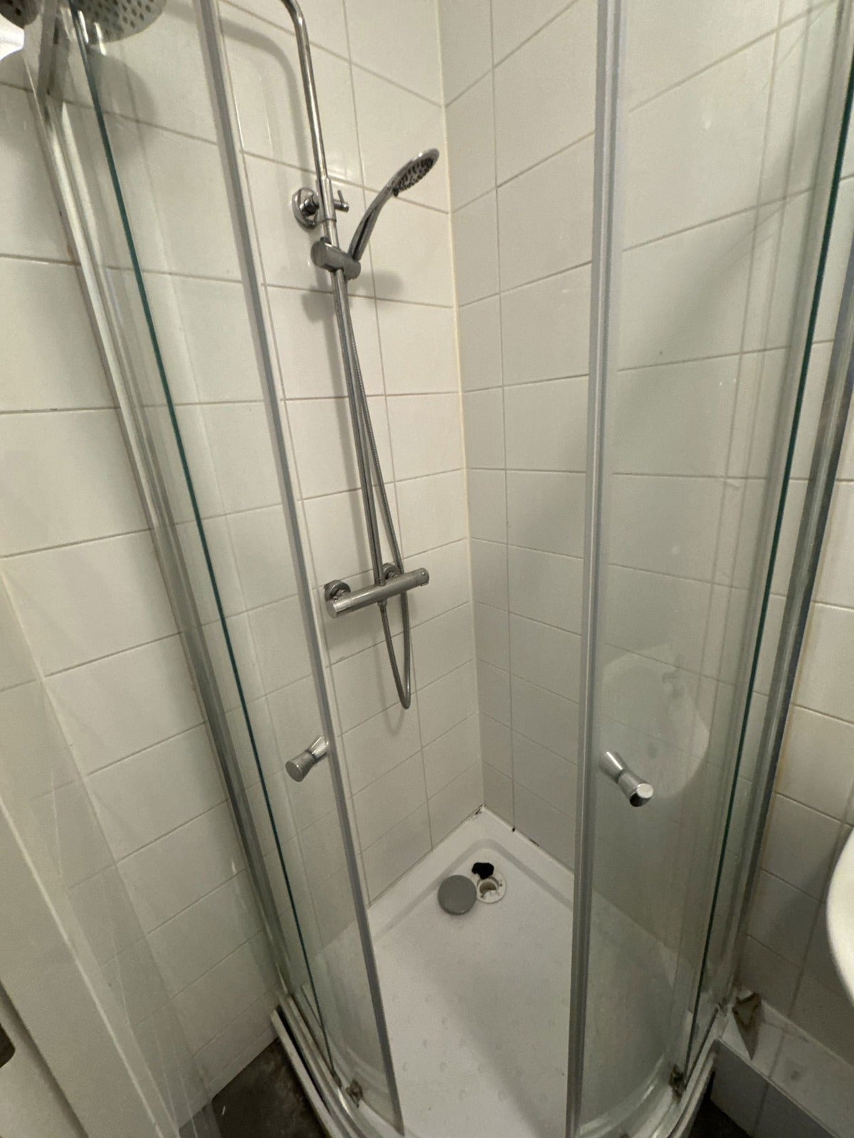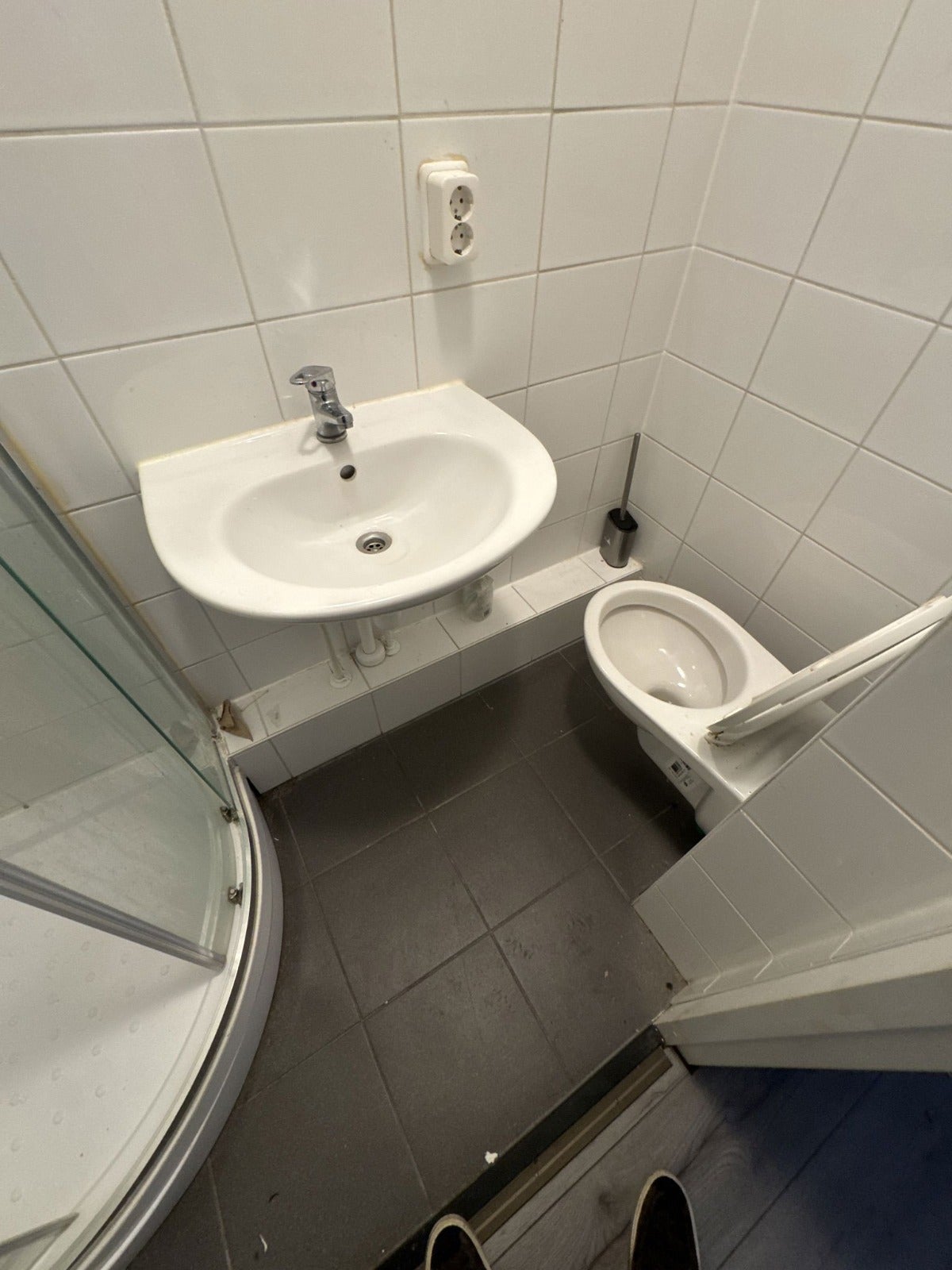 De kamer heeft een eigen badkamer, netjes afgewerkt en voorzien van een douche, wastafel en toilet, voor extra comfort en privacy.