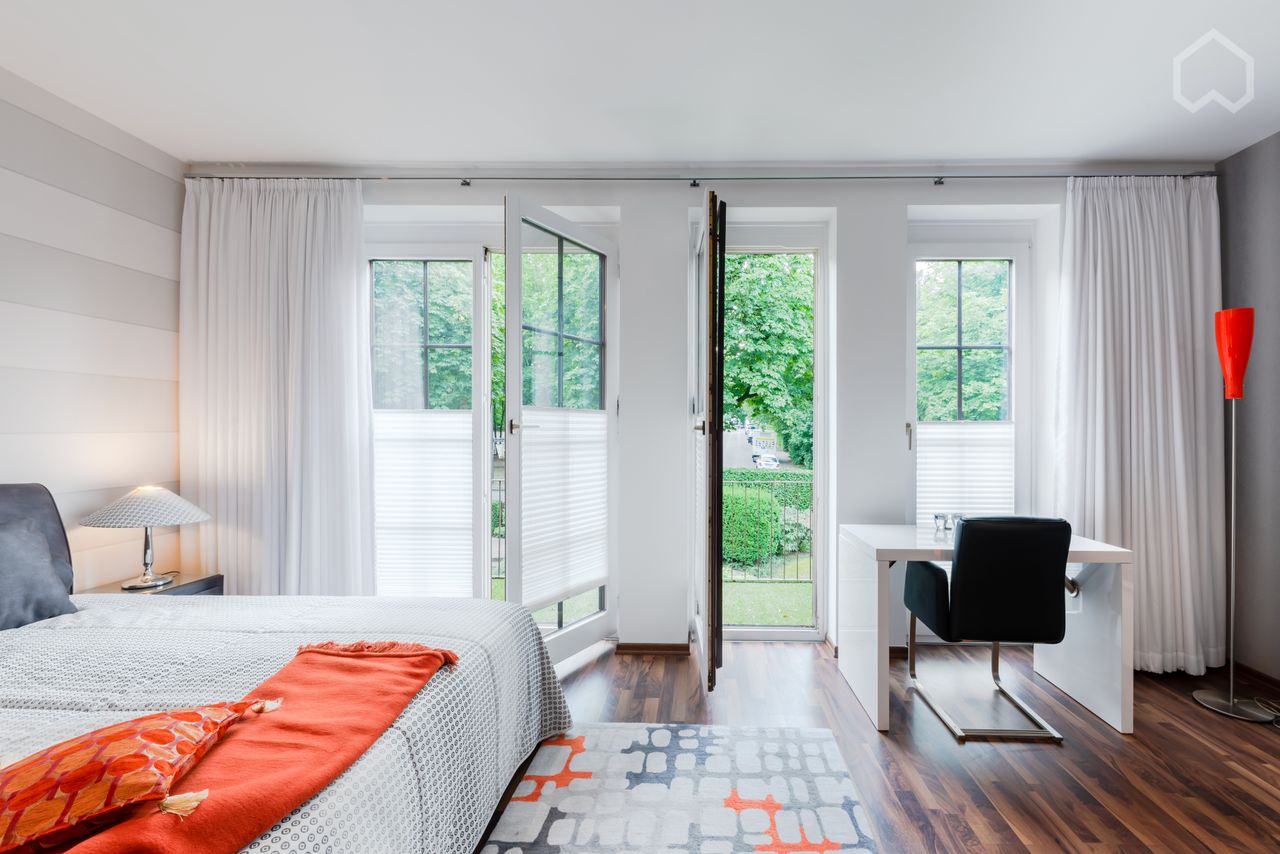 Het mooie, rustige, lichte appartement bevindt zich op de 1e verdieping van een flatgebouw zonder lift.