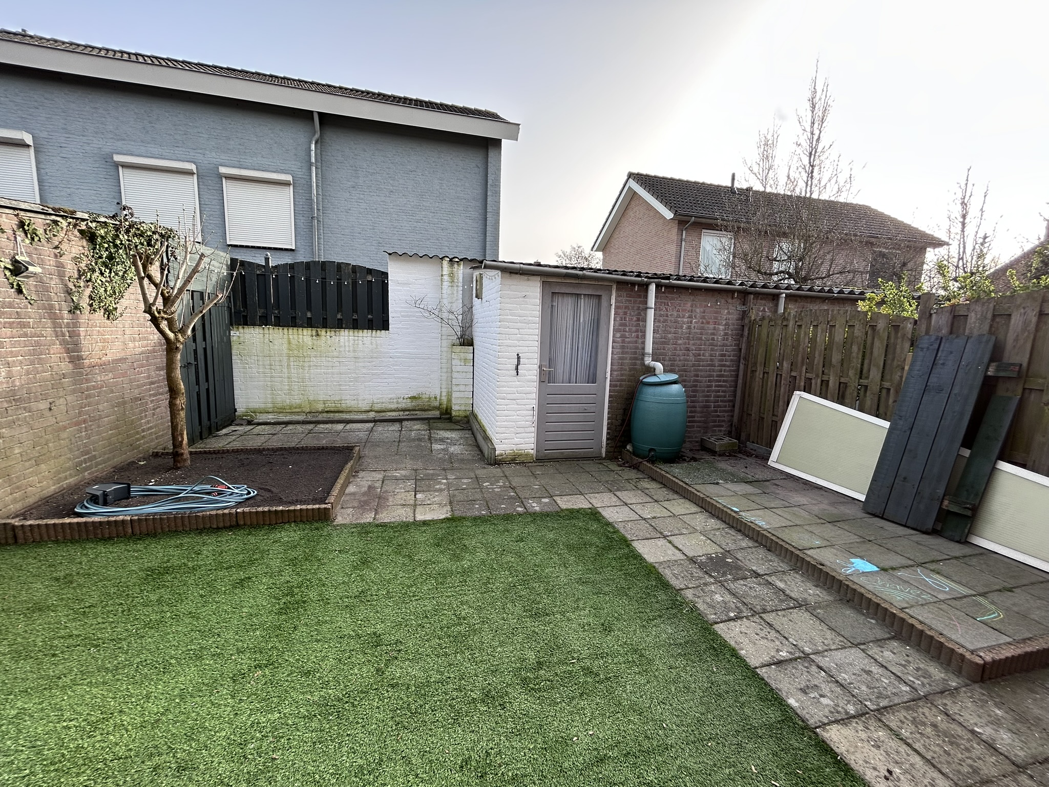 Er is een berging in de tuin. De woning is gelegen aan een autoluw hofje.