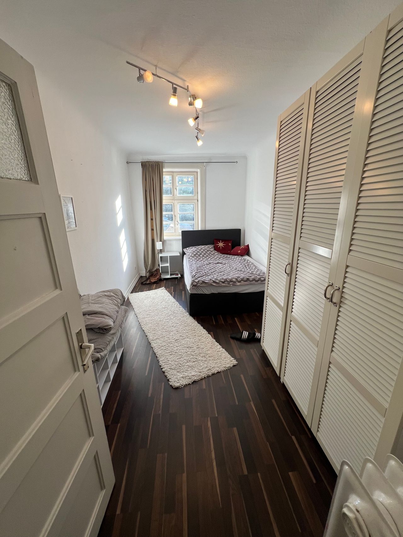 De tweede kamer is uitgerust met een boxspringbed van 140x200m, een nachtkastje en een grote kledingkast. De hal, badkamer (douche met glas) en keuken worden gedeeld. Naast de keuken is er een balkon met directe toegang tot de tuin. De tuin is een gemeenschappelijke tuin en wordt gebruikt om te ontspannen, wassen en barbecueën.