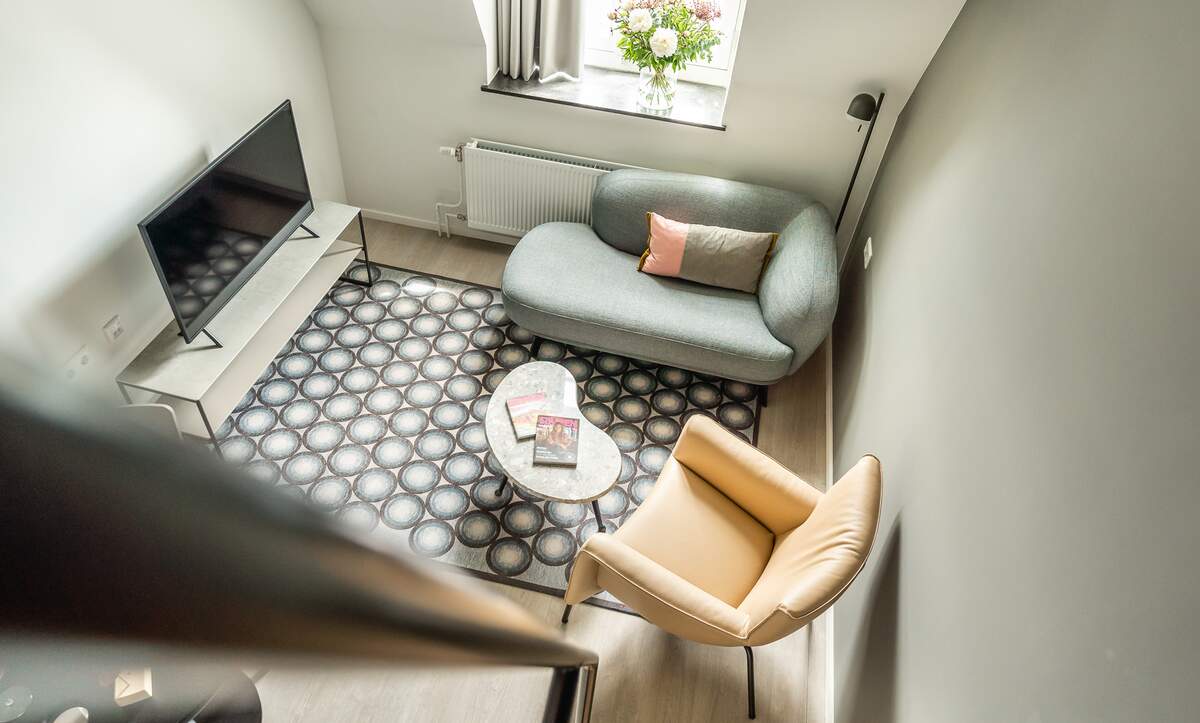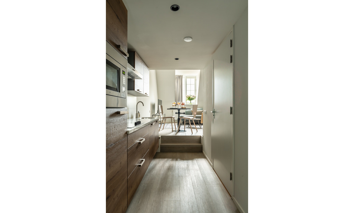 Comfortabele suite met luxe ingerichte keuken, comfortabele zithoek, slaapzolder en ruime badkamer.