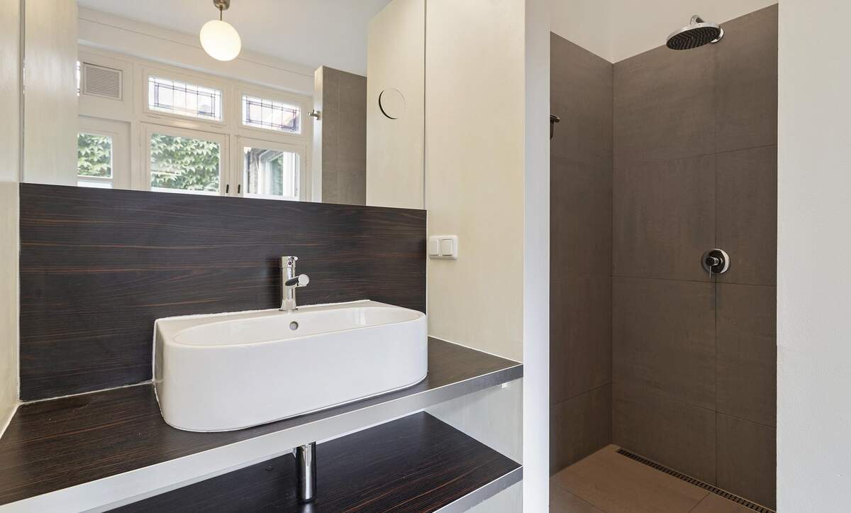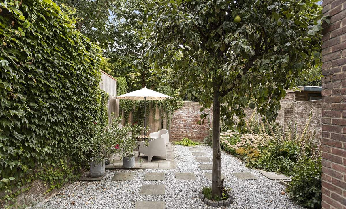 Achter de badkamer bevindt zich de aparte slaapkamer. Vanuit de woonkamer bereikt u via de schuifpui de prachtige sfeervolle tuin. Hier bevinden zich 2 terrassen en een magazijn..