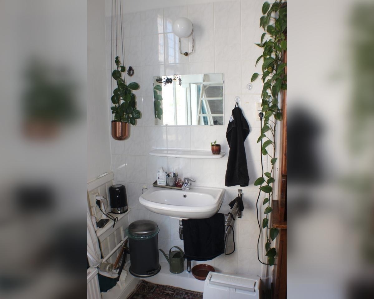 Elke verdieping heeft een eigen toilet en de badkamer delen we samen met de bewoners op de begane grond (in totaal 7 personen). Er is een keuken met koelkast en er is op de begane grond een wasmachine en droger.