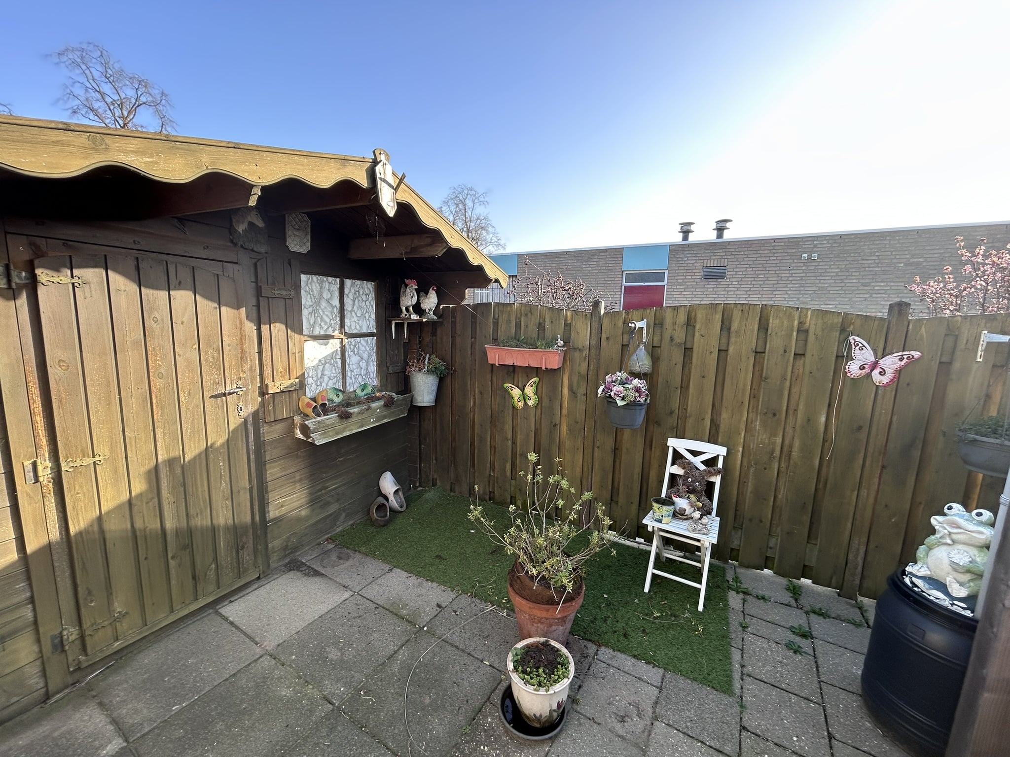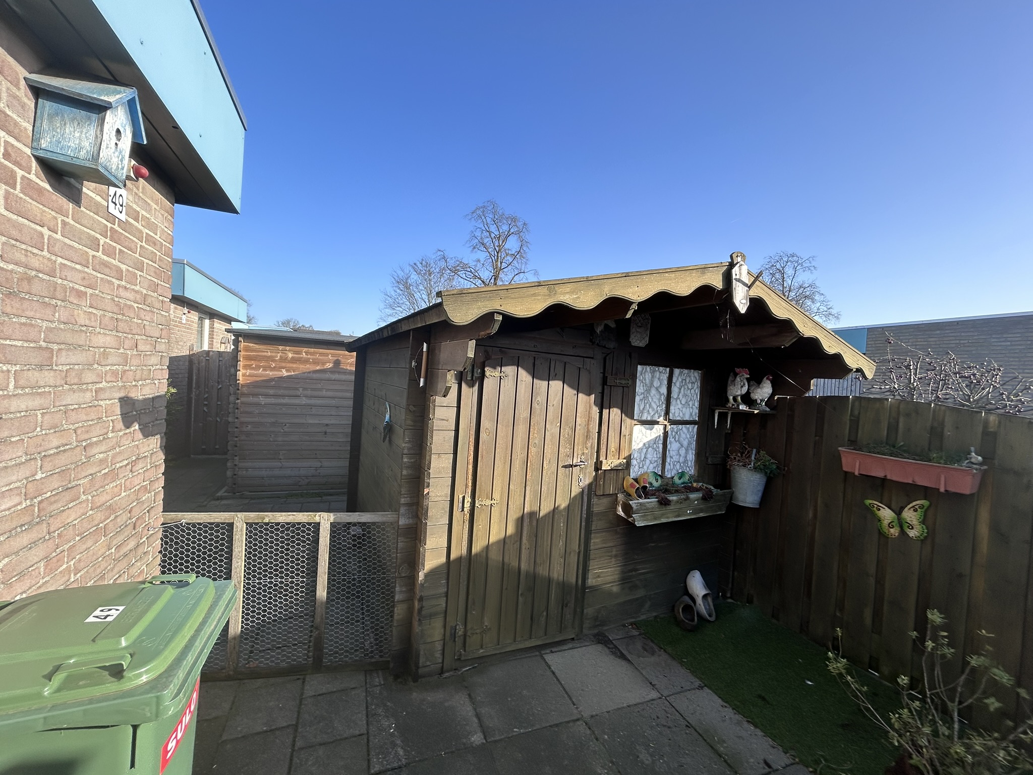 De huidige weergave op de plattegrond klopt dus niet.De oplevering is onder voorbehoud gepland eind mei.Minimale leeftijd 65 jaarOvernamesEr zijn geen overname.Niet standaard veranderingIn de tuin zijn houten schuttingen en een poort aangebracht, standaard zijn er geen schuttingen aanwezig en staan er palen met een draad op de erfgrens.In de tuin is een houten berging aangebracht, standaard is er geen berging aanwezig in de tuin en staan er palen met een draad op de erfgrens..