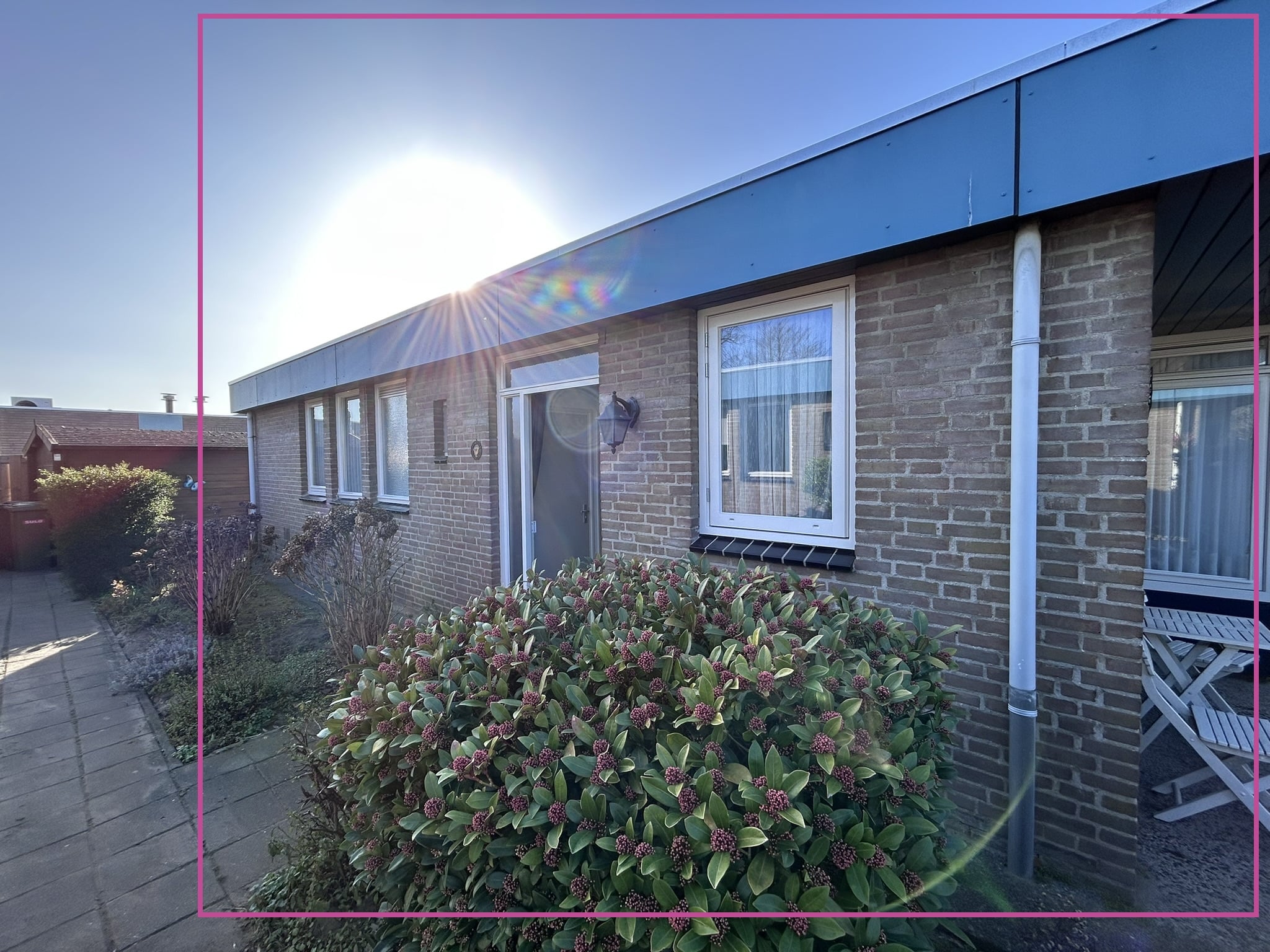 Seniorenbungalow met 2 slaapkamers en een tuin.