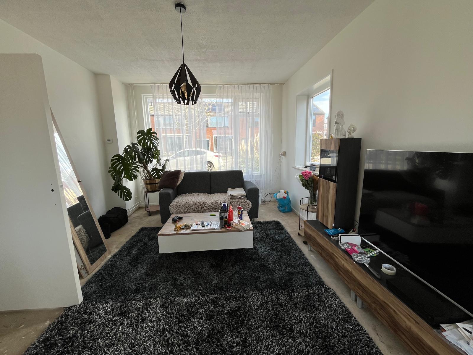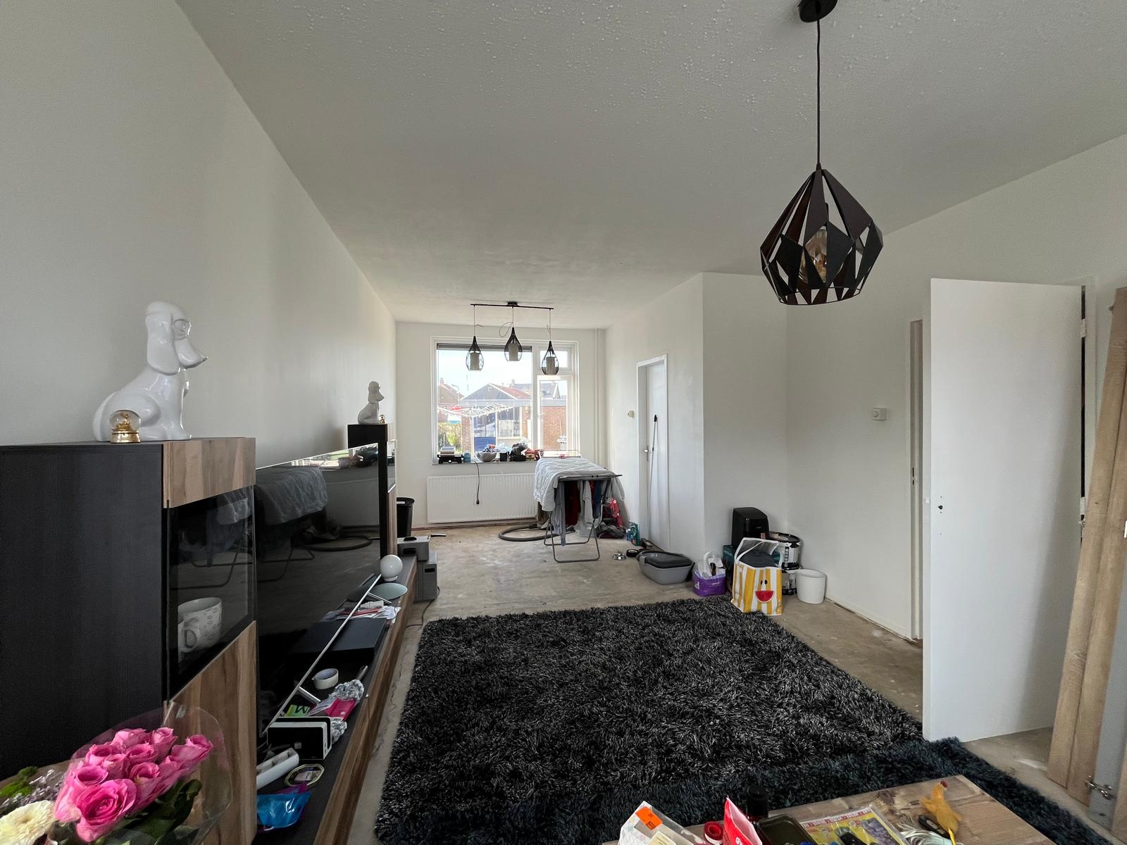 Door de ligging op de hoek beschikt de woning over een ruime tuin.De keuken wordt nog vervangen voordat de woning wordt verhuurd. De woning heeft momenteel geen zonnepanelen, maar ze zijn aangevraagd en worden binnenkort geplaatst. Begane grondVia de entree komt u in de hal met toegang tot het toilet, de trap naar de eerste verdieping en de woonkamer. De woonkamer is ruim en heeft veel lichtinval. Vanuit de woonkamer loopt u door naar de keuken aan de achterzijde van de woning.De keuken wordt nog vervangen voorafgaand aan de verhuur.
