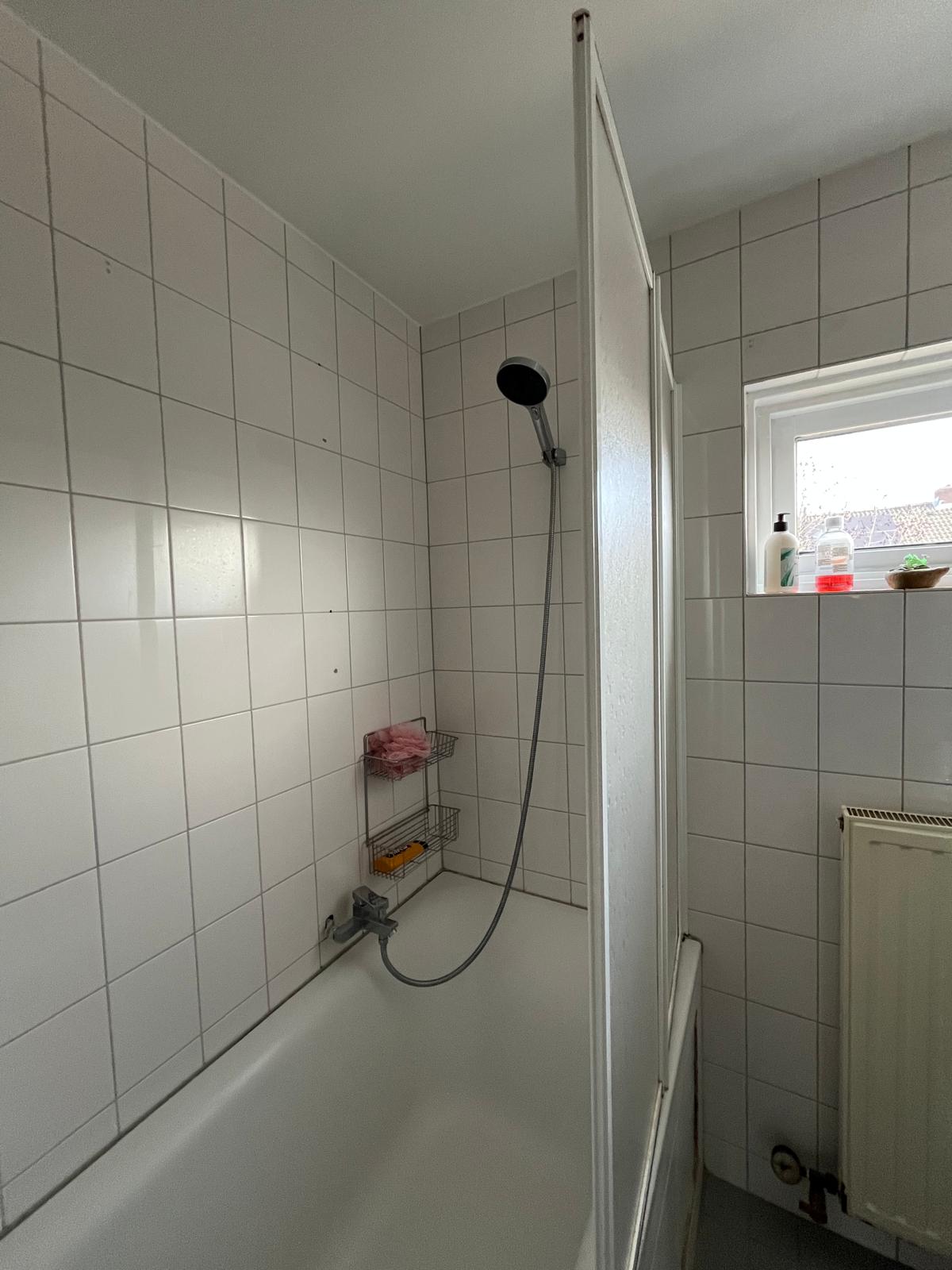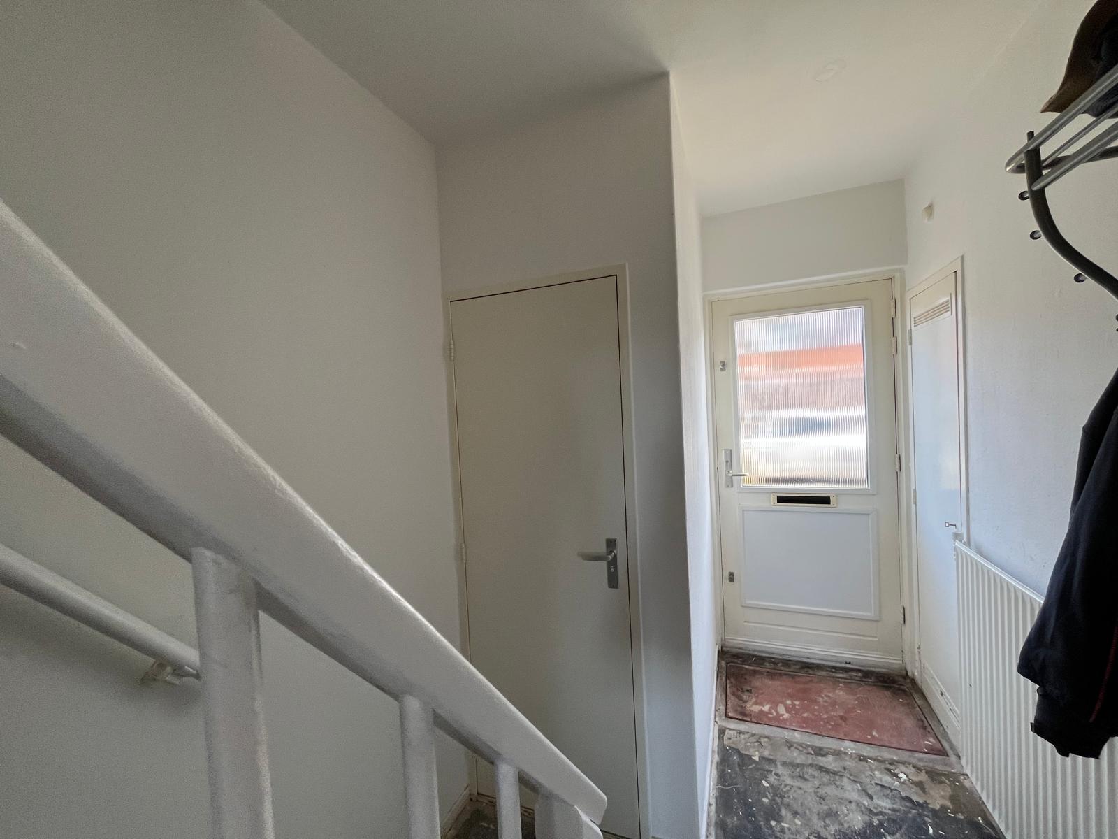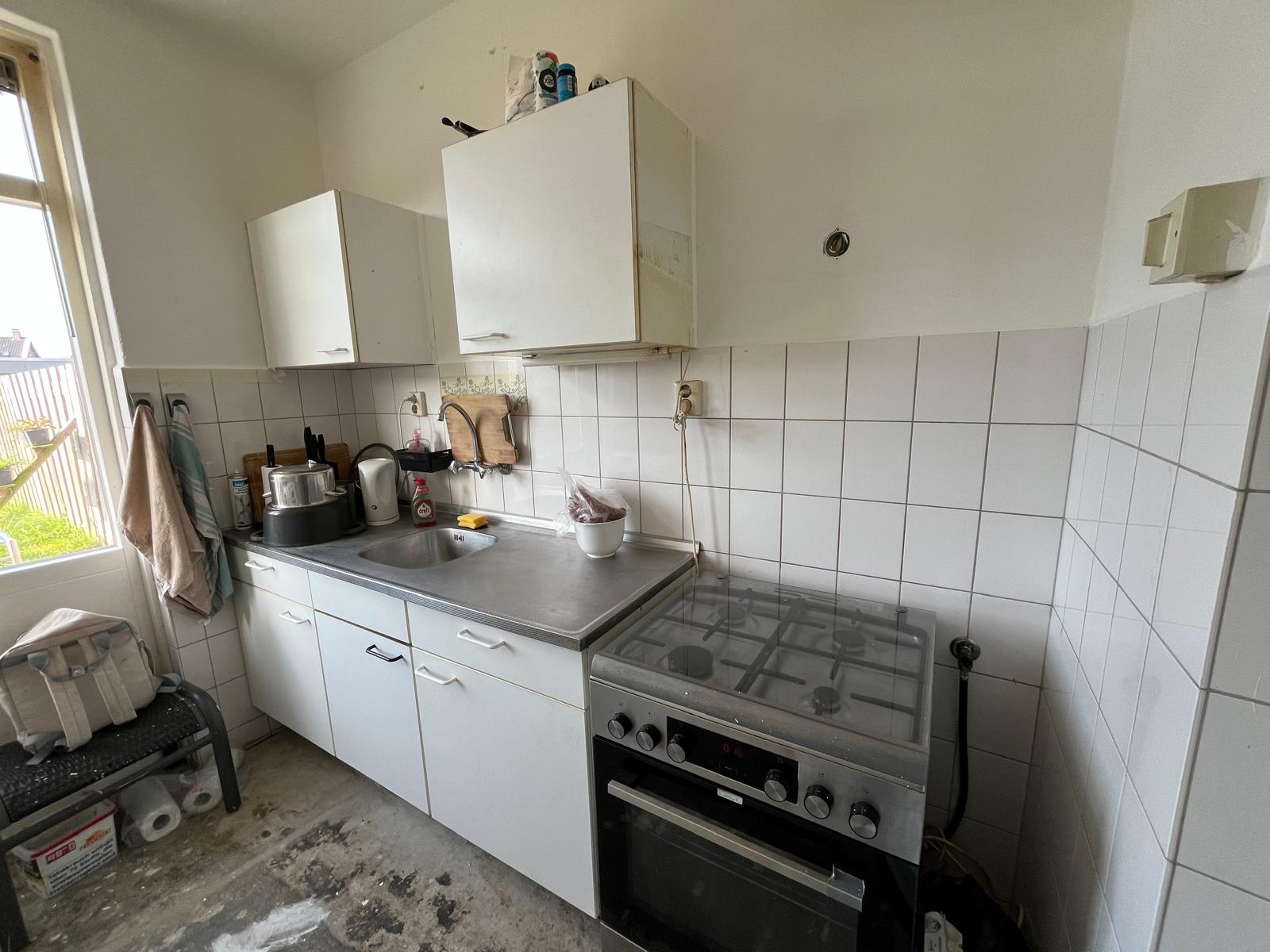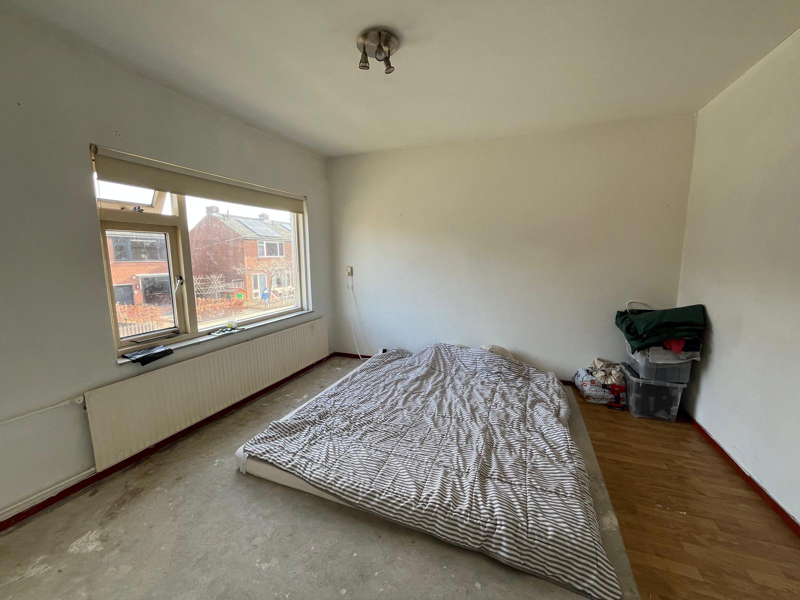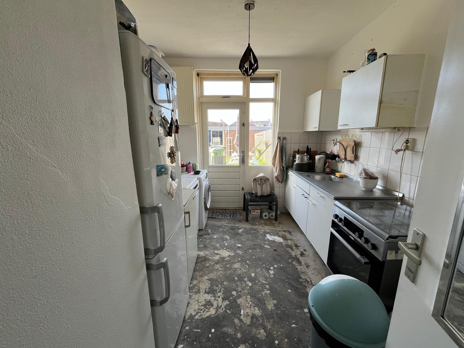 Vanuit de keuken heeft u toegang tot de tuin.De woning is voorzien van gas om te koken. Wanneer u liever elektrisch wilt koken kunnen wij een elektrische kookgroep voor u aan laten brengen tegen een verhoging van €3,50 per maand.Eerste verdiepingVia de overloop bereikt u drie slaapkamers en de badkamer. Op de plattengrond staat een kastenwand tussen de 2 slaapkamers, deze is vervangen door een wand. De badkamer is voorzien van een douche, toilet en wastafel.