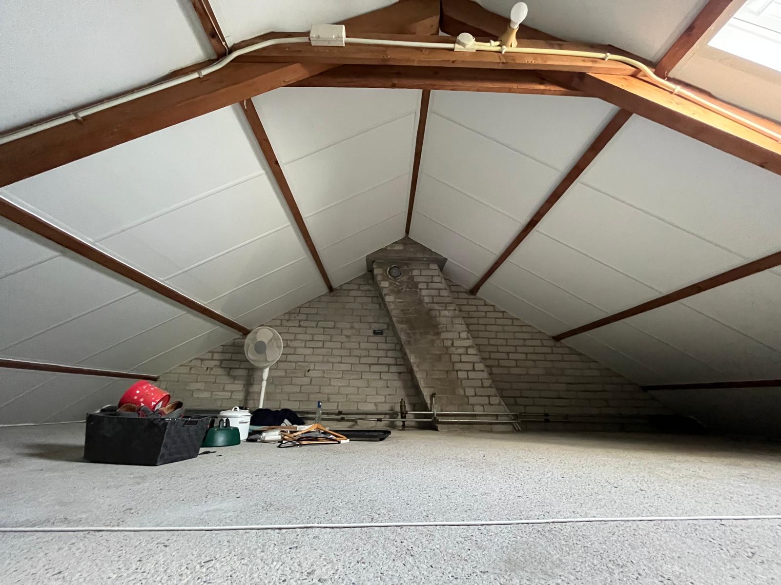 Het ligbad moet worden verwijderd en wordt niet goed gekeurd. Tweede verdiepingVia een vlizotrap bereikt u de zolder. Deze ruimte is geschikt voor het opbergen van spullen, ongeschikt als slaapkamer.TuinDe woning beschikt over een ruime tuin. Door de hoekligging heeft de woning extra buitenruimte. In de tuin staat een berging voor het stallen van fietsen of het opbergen van tuinspullen.