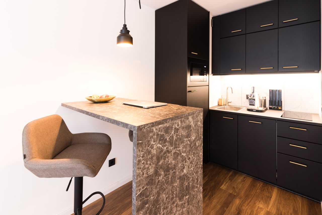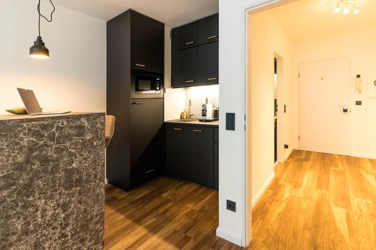 Het appartement heeft een moderne en volledig uitgeruste pantry met koelkast, magnetron, 2 keramische kookplaten, Nespresso koffiemachine en al het keukengerei dat u nodig heeft voor dagelijks gebruik.