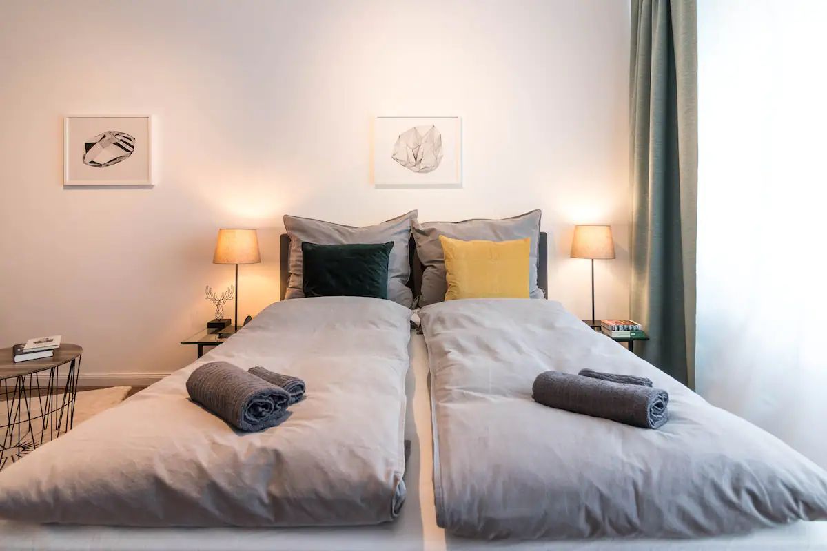 De woonkamer en de slaapkamer hebben voldoende ruimte voor 2 personen, het boxspringbed (1.60mx2.00m) is zeer comfortabel dankzij de hoogwaardige matras.