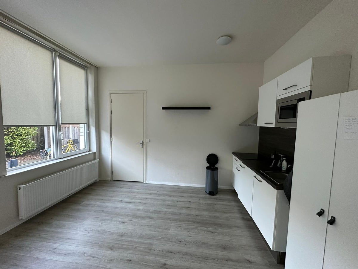 De studio heeft een eigen woonkamer met open keuken.