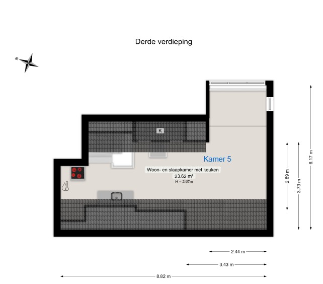 De huurprijs voor de kamer 3 bedraagt €690,- inclusief een voorschot van €65,- op gas, water, elektra en internet.