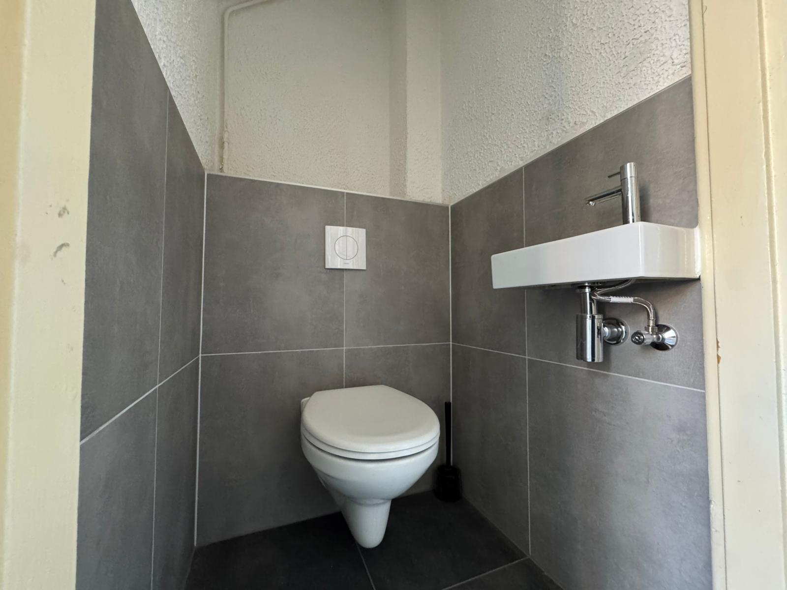 Op de eerste verdieping bevindt zich een gemeenschappelijk toilet. De badkamer, gelegen op de tweede verdieping, is netjes afgewerkt en voorzien van een douche, een wastafel met bijbehorend meubel en een handdoekradiator.