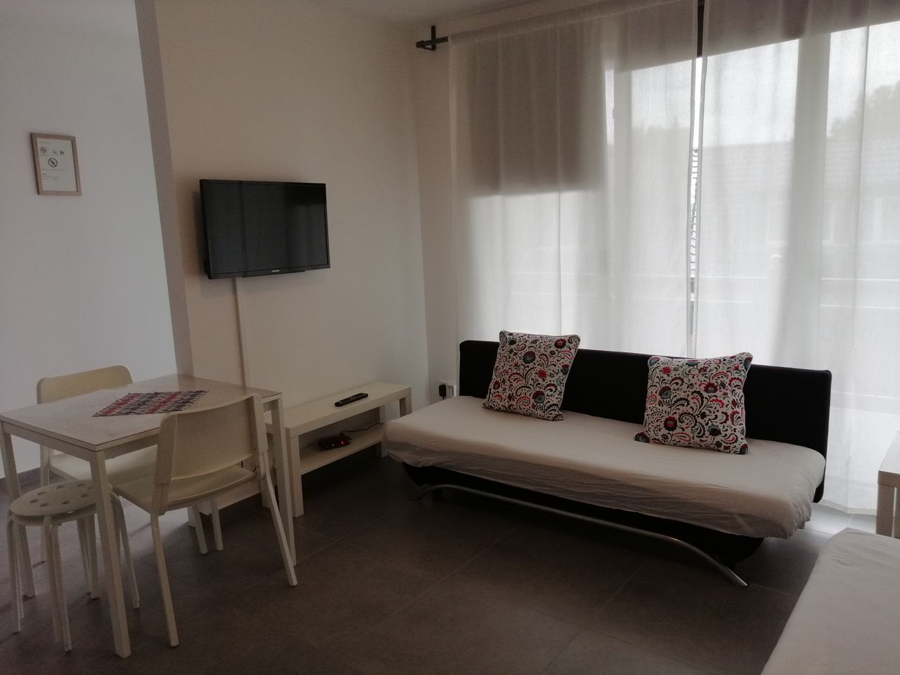 De keuken is verbonden met een open woonkamer. De woonkamer heeft twee slaapbanken, een flatscreen-tv, een tafel en stoelen. De keuken heeft een vaatwasser, koffiezetapparaat, waterkoker, koelkast, magnetron en de meest noodzakelijke kookgerei. De slaapkamer is uitgerust met twee eenpersoonsbedden, een nachtkastje en een kledingkast.