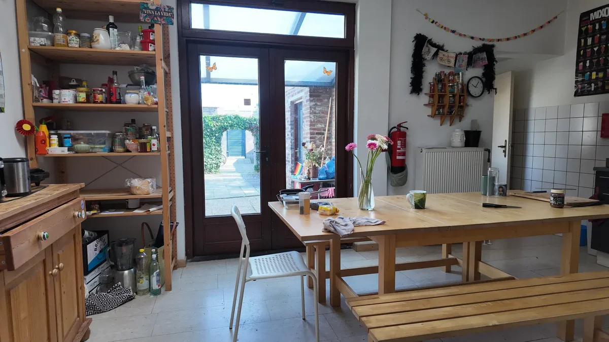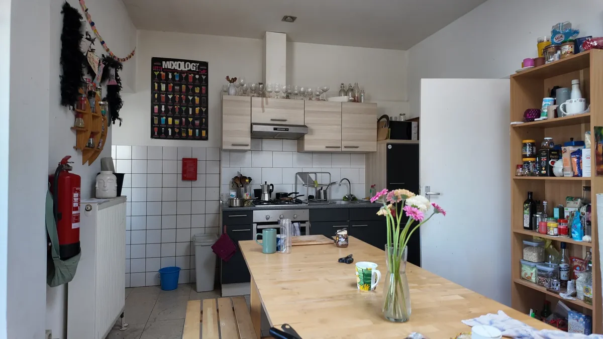 Samen met 3 andere studenten wordt op begane grond een woonkamer, ruime keuken, toilet en grote tuin met fietsenberging gedeeld en op de eerste etage een badkamer..