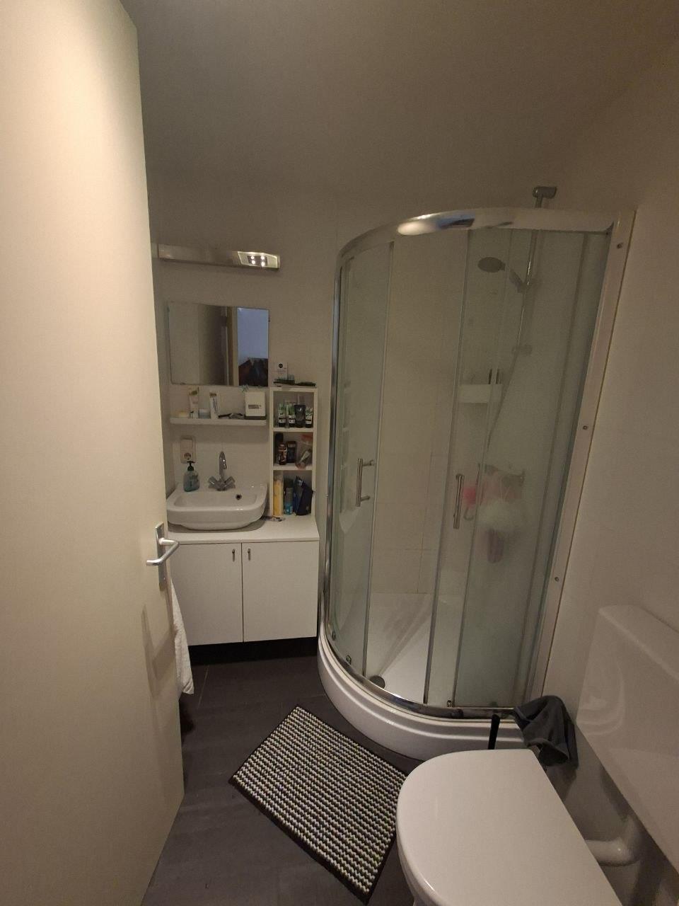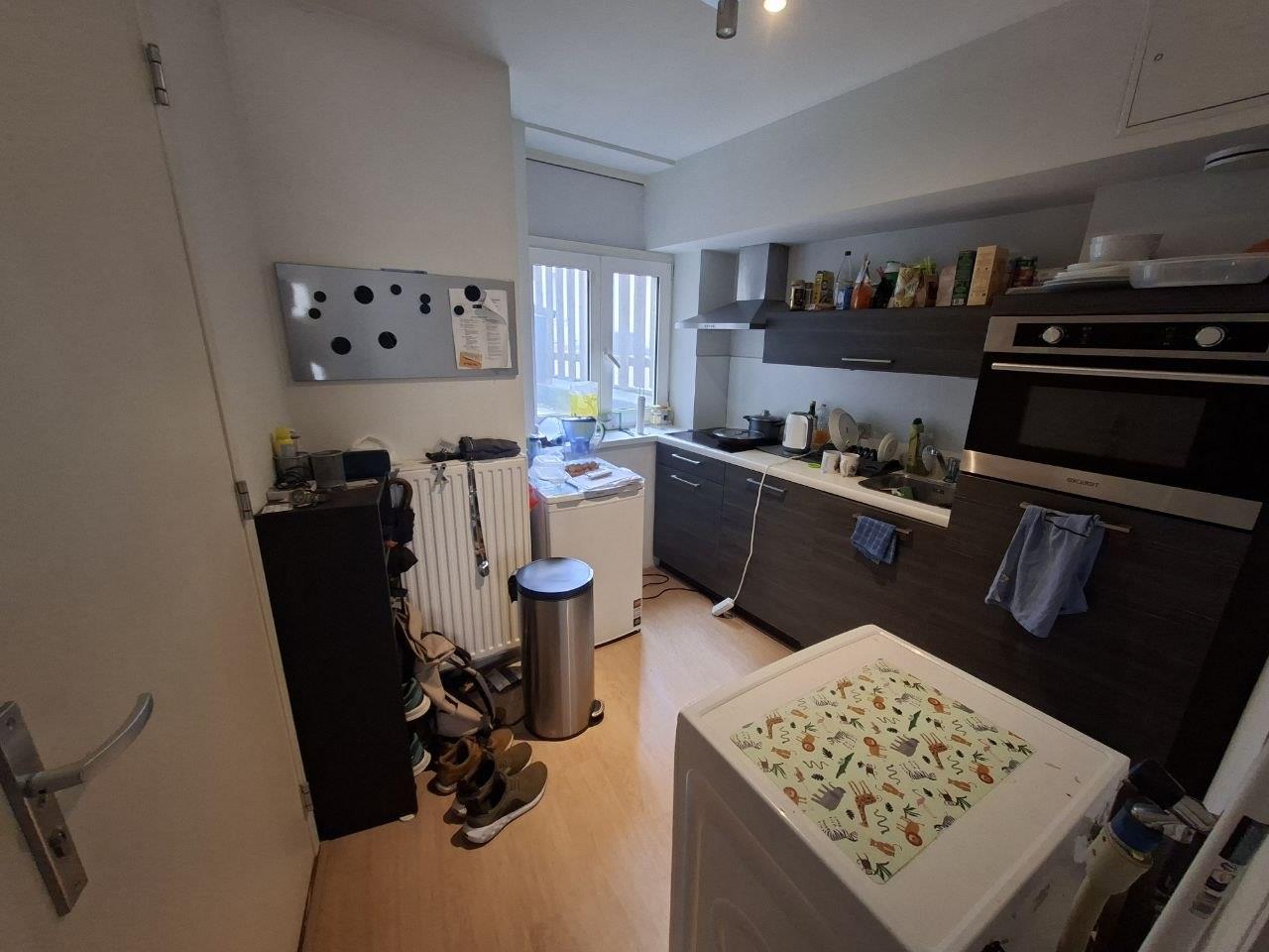 Thanks to its central location, shops, restaurants and public transport are all within walking distance, allowing you to enjoy comfortable and vibrant city living.Available for one person.Layout:Ground floor:Staircase towards all floors.First floor:Upon entering the studio, you step directly into the spacious and practical kitchen. The kitchen is equipped with a sink, combination microwave oven, extractor hood, 4-burner induction cooktop and a low refrigerator without freezer compartment. The washing machine is neatly integrated into the kitchen and remains available for use.Through the hallway you reach the modern bathroom on the left-hand side, finished with a stylish grey tiled floor. The bathroom features a spacious shower cabin, a washbasin cabinet with lighting, and a toilet.The cosy living/sleeping area can be accessed via two small steps and has a playful layout that gives the studio a charming character.
