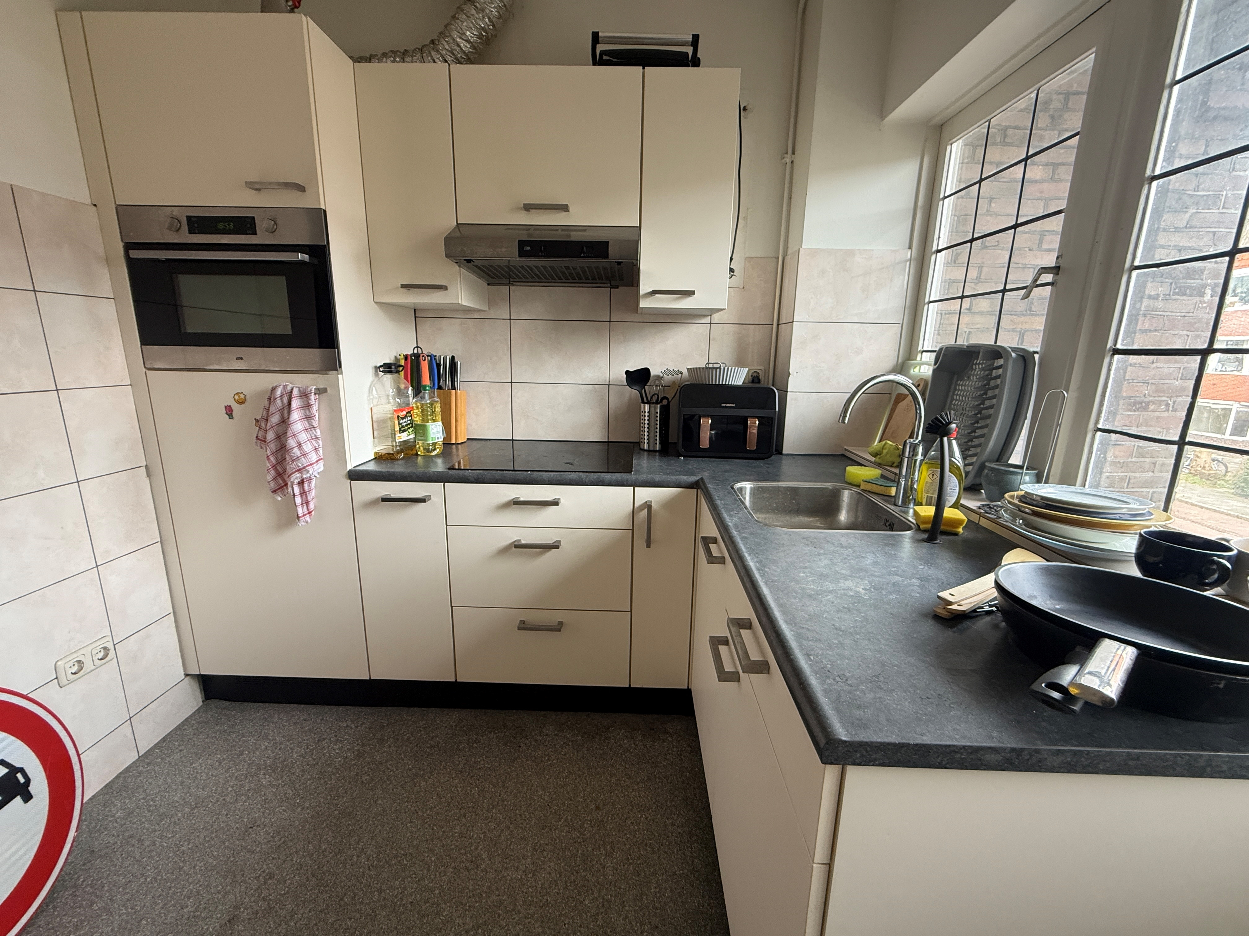 Locatie: De kamer is gelegen in de korrewegwijk. In de directe omgeving bevindt zich onder andere een AlbertHeijn, cafe's en restaurants en het centrum van de stad ligt op slechts 10 minuten fietsafstand. Indeling: Bij binnenkomst kom je in de hal terecht, die toegang biedt tot alle kamers en de gemeenschappelijke ruimtes. De woning wordt gedeeld met 6 mannelijke en vrouwelijke medebewoners.