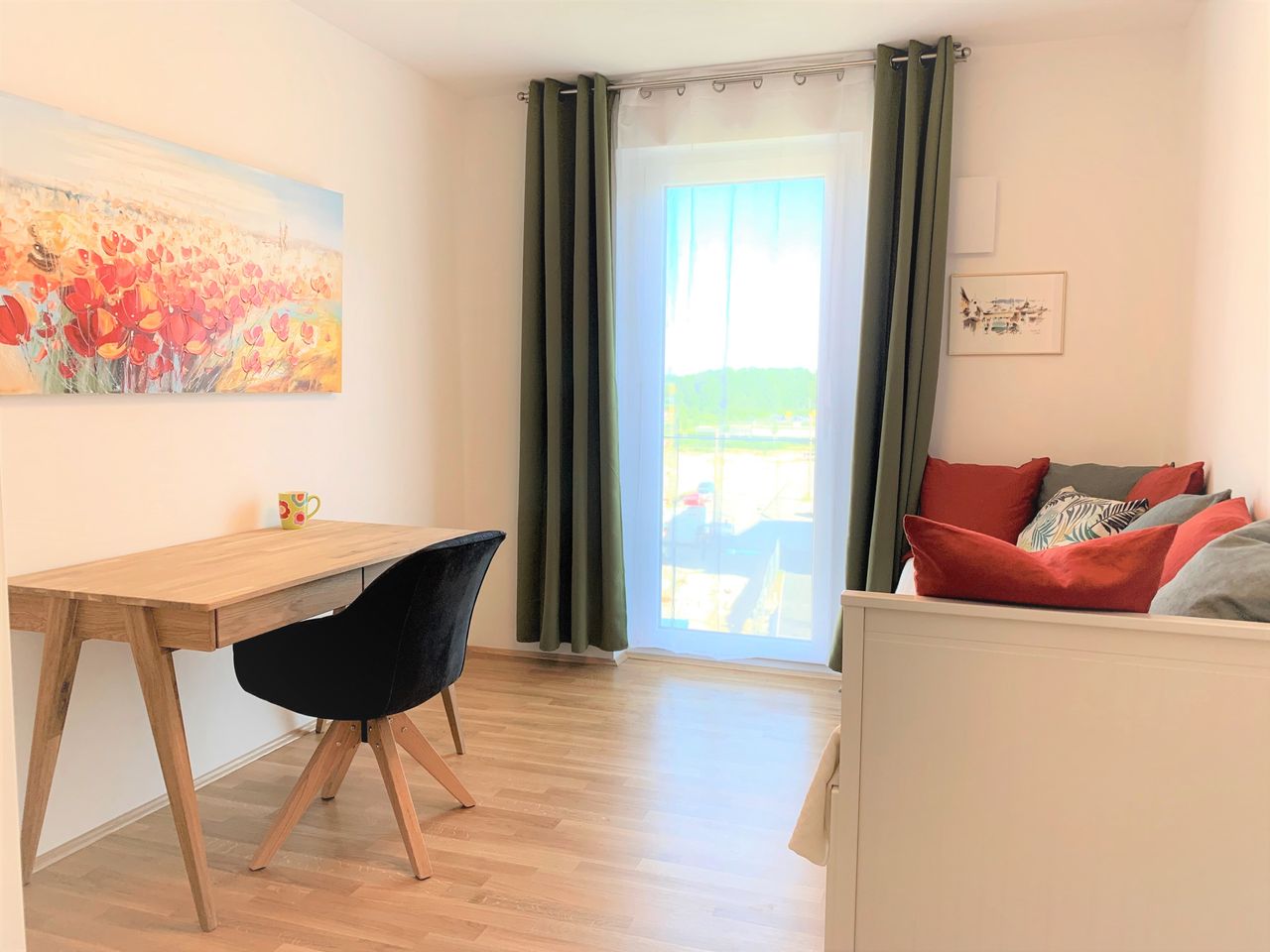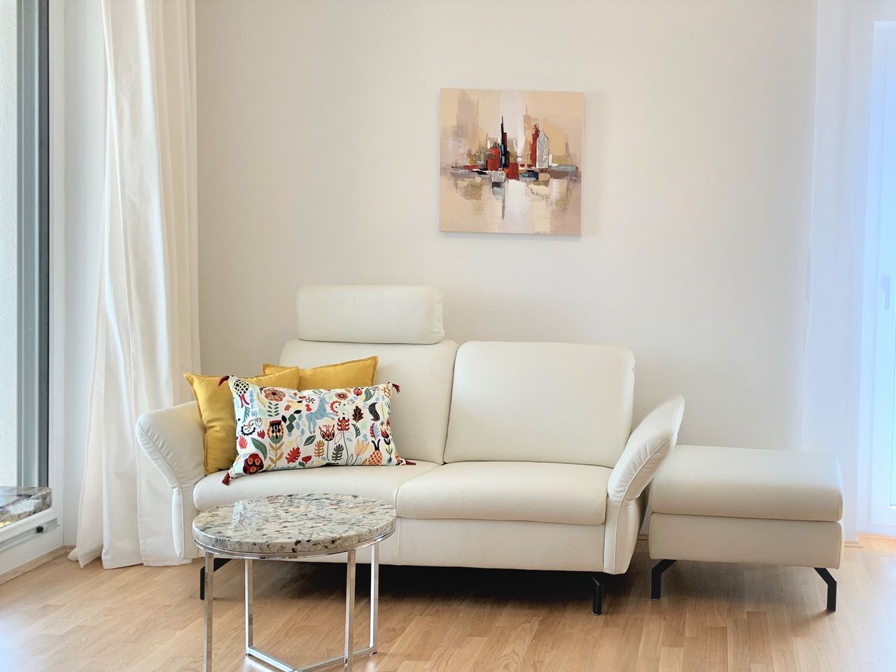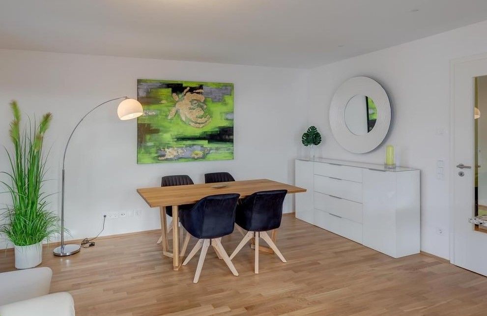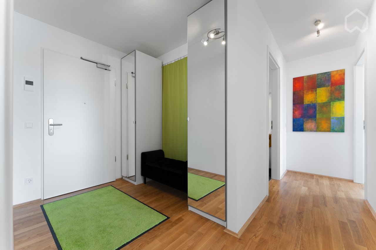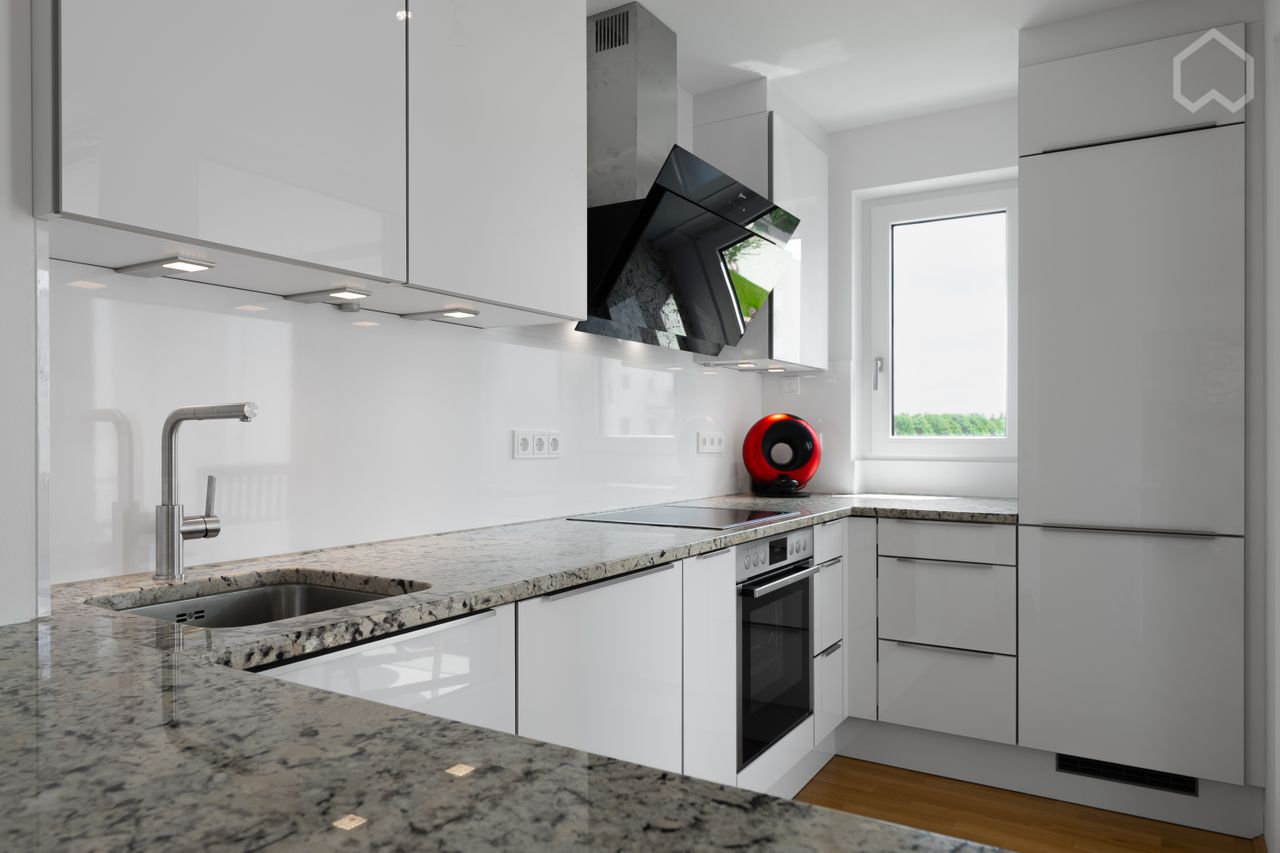 Aparte keuken met hoogwaardige keukeninrichting van het merk Musterring met vaatwasser, oven, jaren 80 inductie kookplaat, inbouw magnetron. ruime badkamer met ligbad en wasmachine.