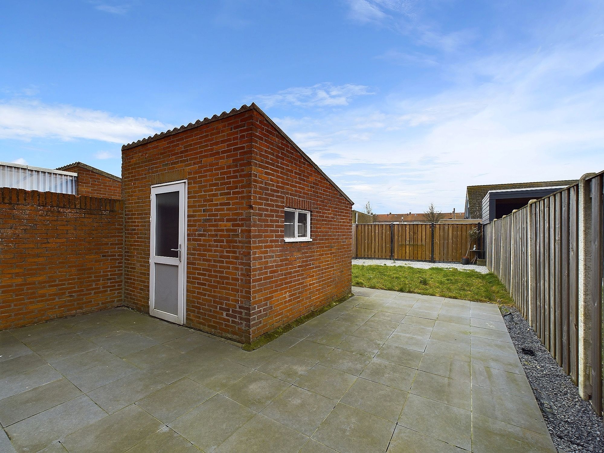 Diepe zonnige tuin met berging gelegen op het Westen.