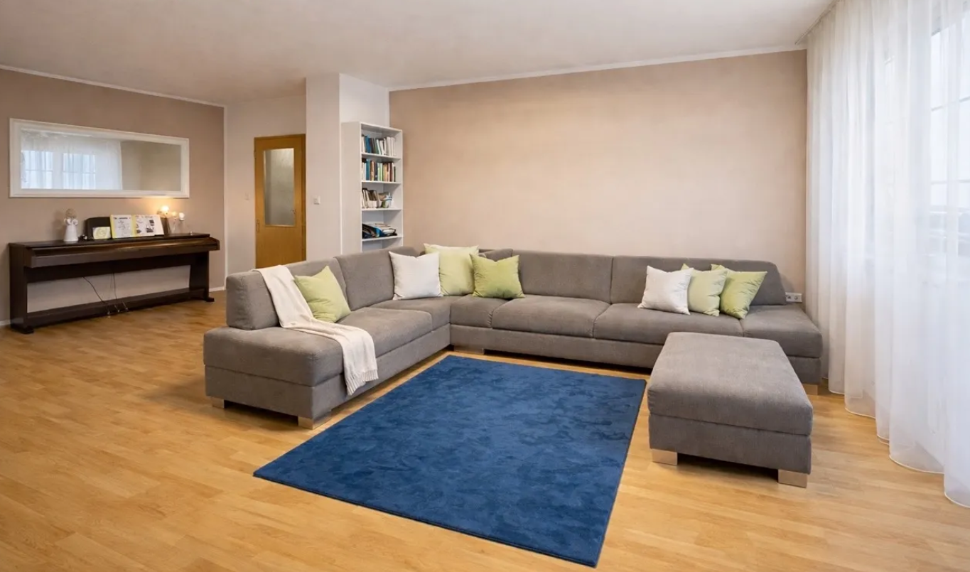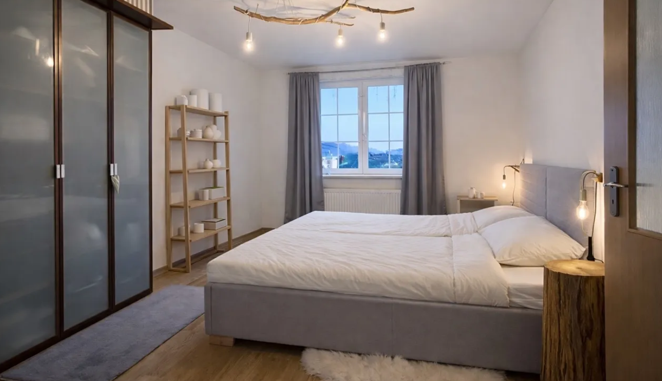 Het appartement biedt een ruime oplossing, geschikt voor gezinnen met kinderen.