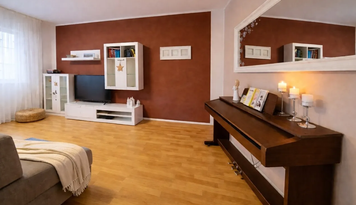 Een royale woonkamer met balkon, een grote kinderkamer, opgedeeld in een dag- en een nachtgedeelte om te ontspannen. Een ruime hal met voldoende opbergruimte en een slaapkamer voor de ouders. Het appartement beschikt over een balkon van 7 m² en een terras, die een veilige buitenruimte bieden om te spelen en te ontspannen, evenals een ruime kelder voor het opbergen van fietsen en kinderspullen.