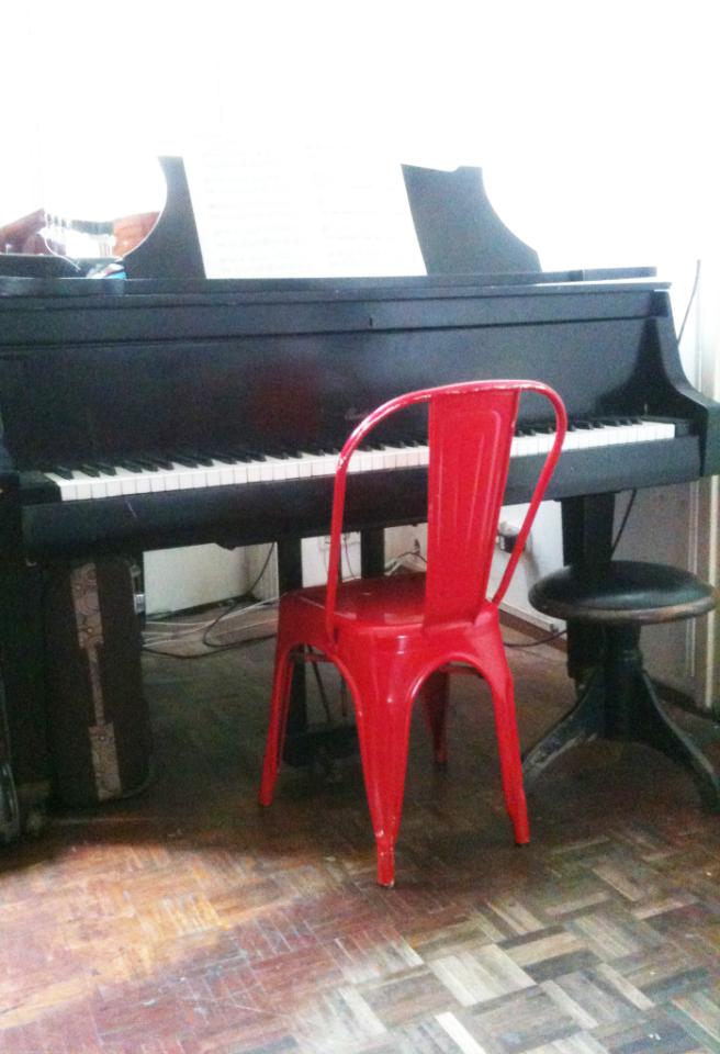* free use of music corner with grand piano, classic and electric guitars and percussion instruments