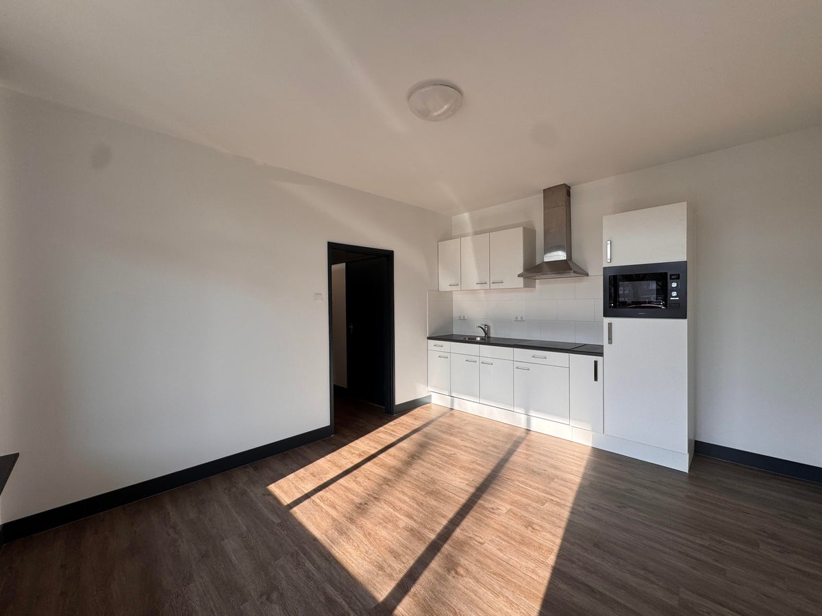 Het appartement heeft een lichte woonkamer met een open luxe keuken.
