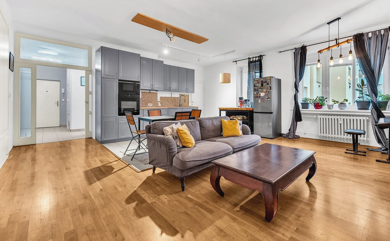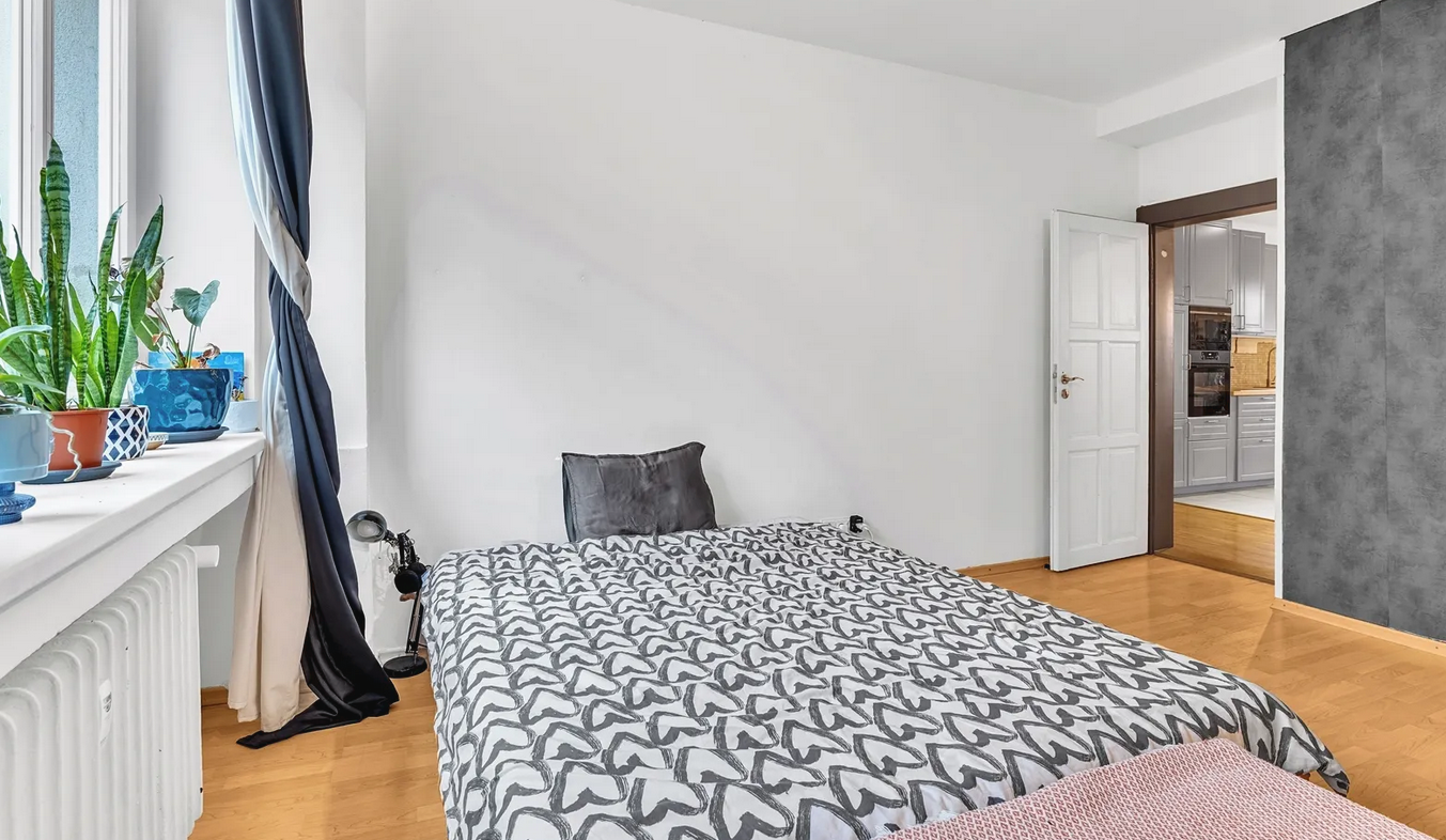 Twee aparte, ruime slaapkamers, een gedeelde en zeer ruime woonkamer met kitchenette. Vanuit de hal is er een aparte ingang naar de badkamer, en het toilet is ook apart.