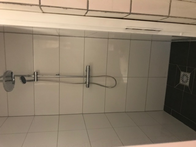 De gemeenschappelijke badkamer is voorzien van twee douches.