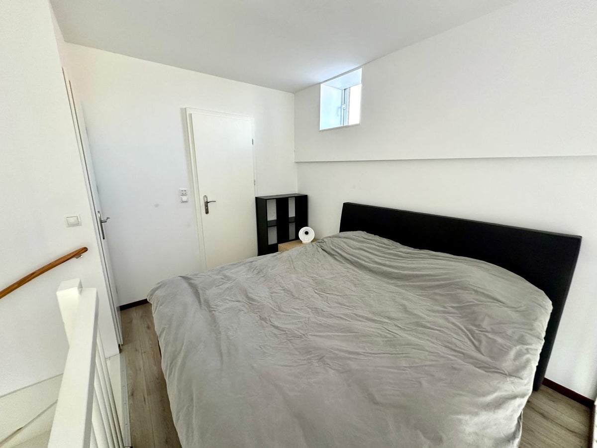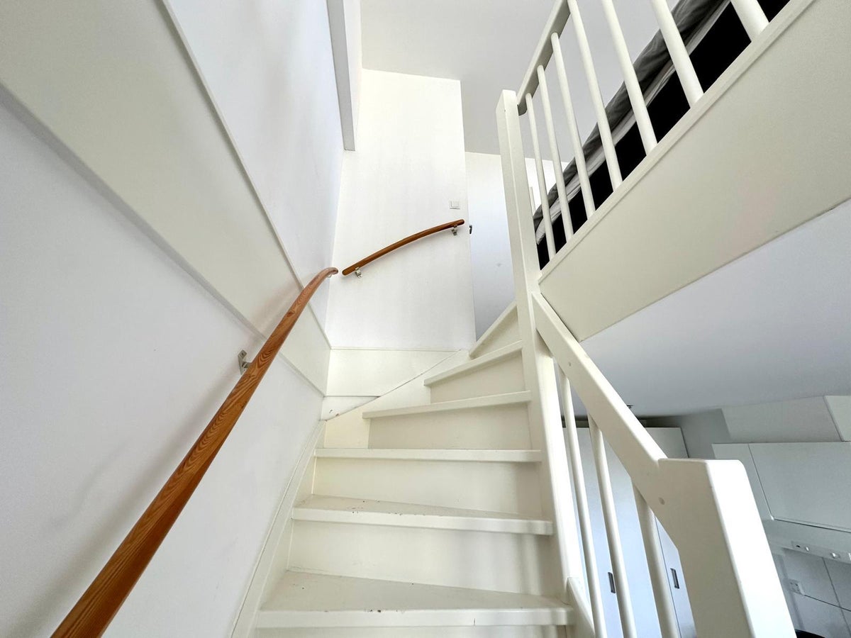 Vanuit de woonkamer leidt een trap naar de sfeervolle slaapvliering, waar je tevens toegang hebt tot de badkamer.
