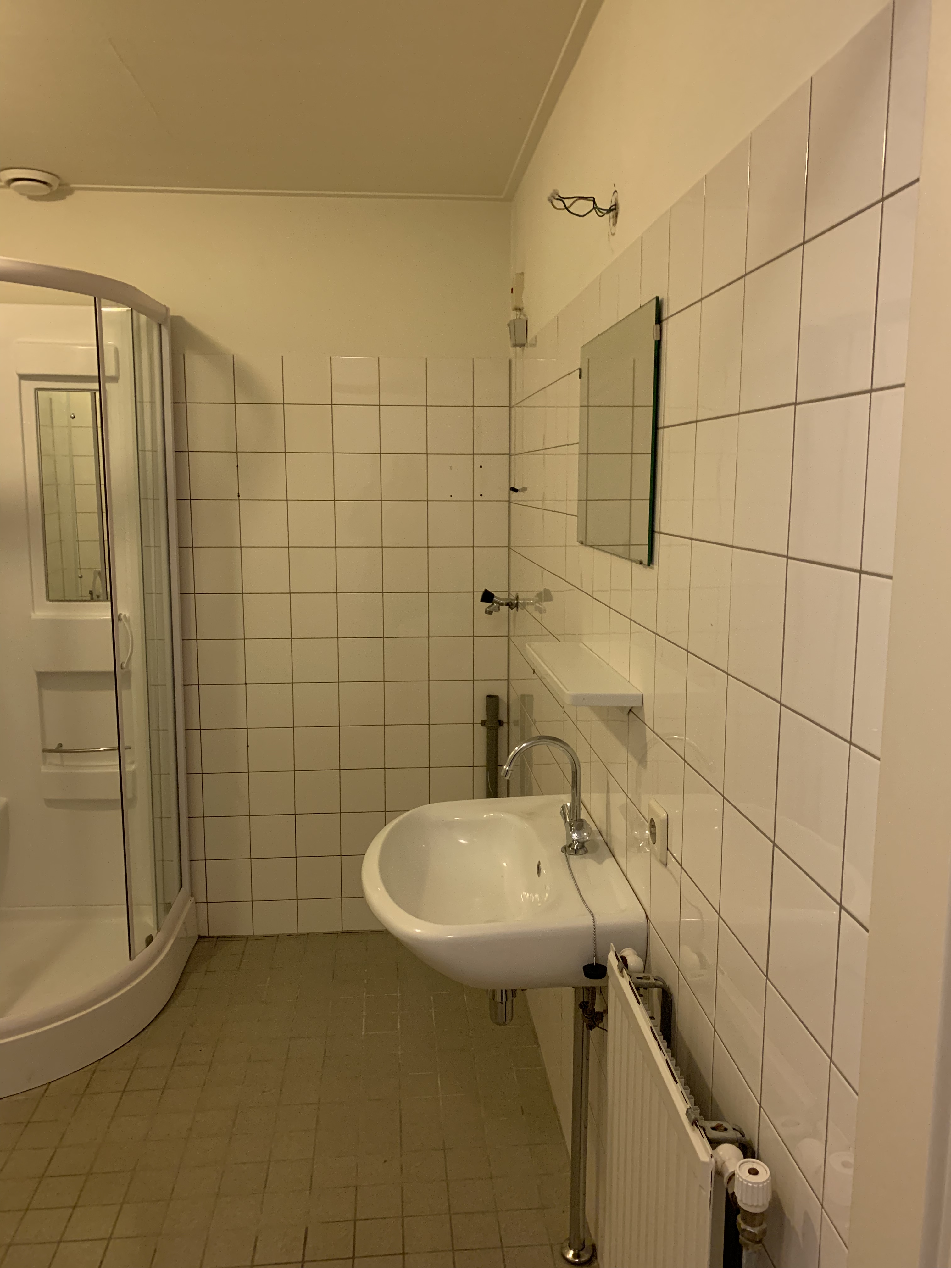 Badkamer douche toilet wastafel en wasmachine aansluiting aanwezig.