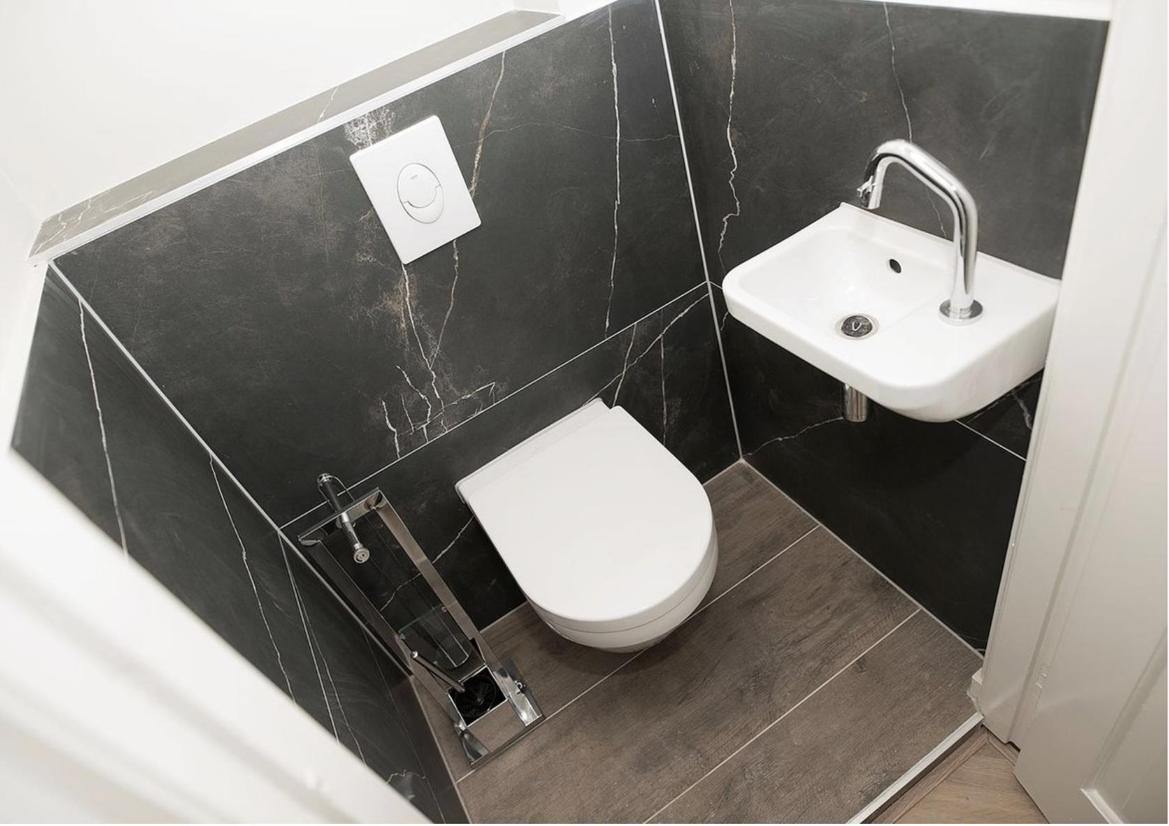 Het appartement heeft twee badkamers (waarvan één met een heerlijk bubbelbad), twee toiletten en een grote, gezellige gedeelde woonkamer. Het pand is een prachtig jaren '30-gebouw dat volledig is vernieuwd, maar zijn charme heeft behouden.