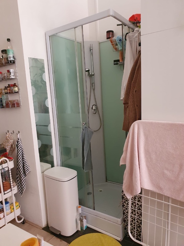 De kamer heeft een eigen keuken en douche.