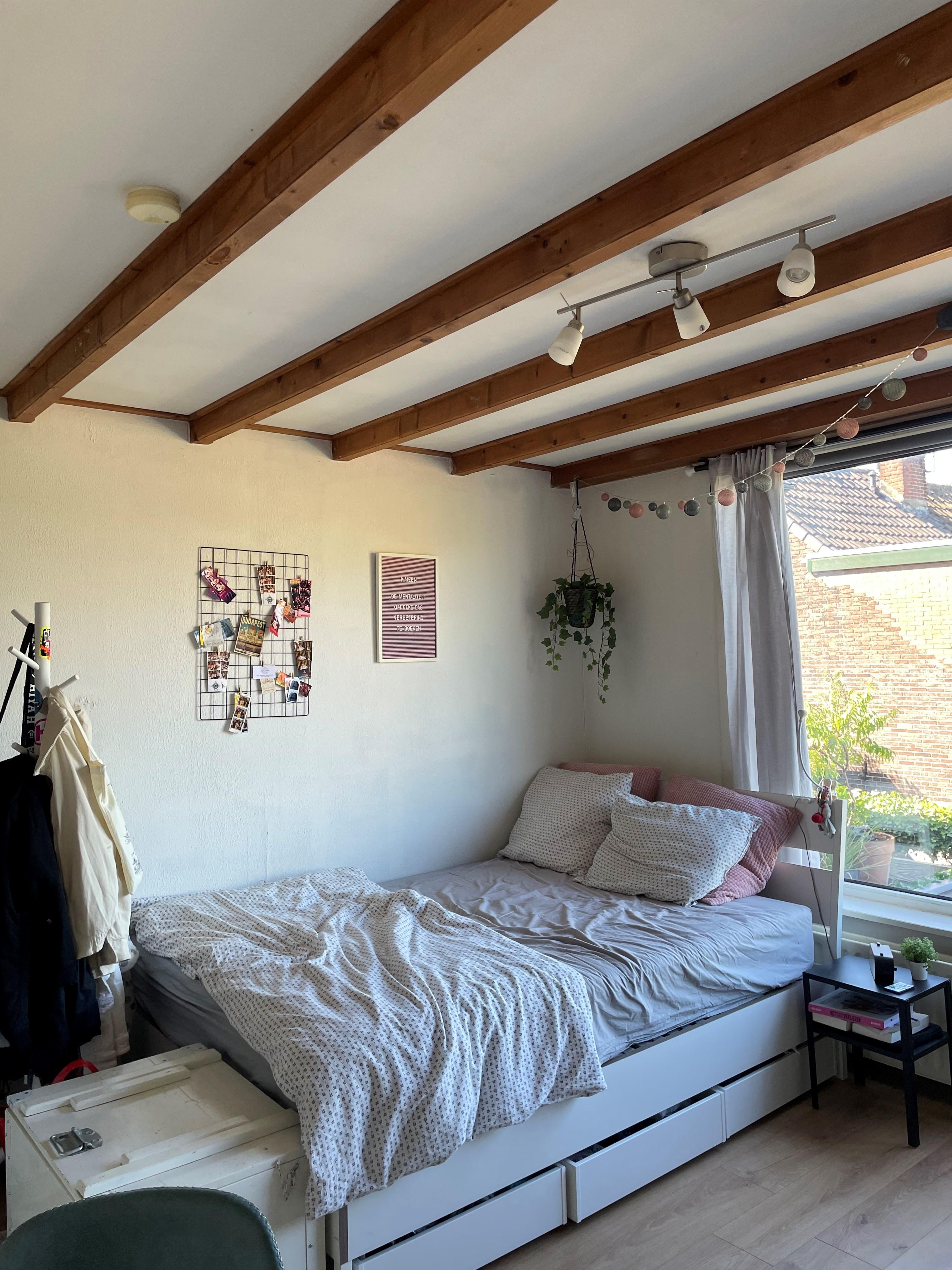 het huis beschikt over een fijne tuin waar je in de zomer heerlijk kunt ontspannen. in totaal wonen er vier andere huurders in het pand. de tuin en badkamer worden met hen gedeeld, terwijl je de keuken slechts met één medebewoner deelt. interesse? kijk op onze website de woningwinkel voor alle informatie en beschikbaarheid.