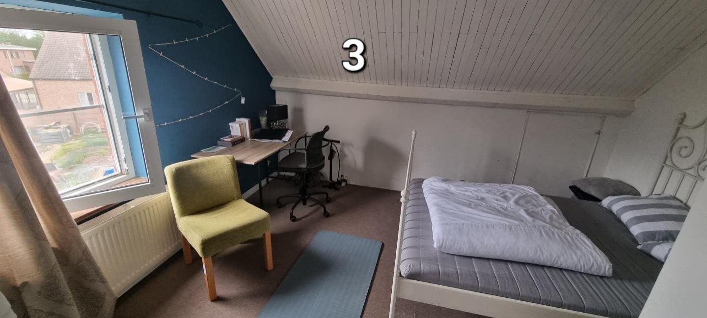 Ruimte voor 4 studenten en zoeken 1 nieuwe student. 4 slaapkamers, grote open keuken, woonkamer, studeerkamer, privé terras, garage/fietsenstalling, badkamer met ligbad, dubbele wastafel, 2x toiletten. Grote tuin en terras met grote groentetuin en kippenren waar gratis groenten en eieren van genuttigd kunnen worden wanneer in seizoen. Gezellig en rustig gelegen.