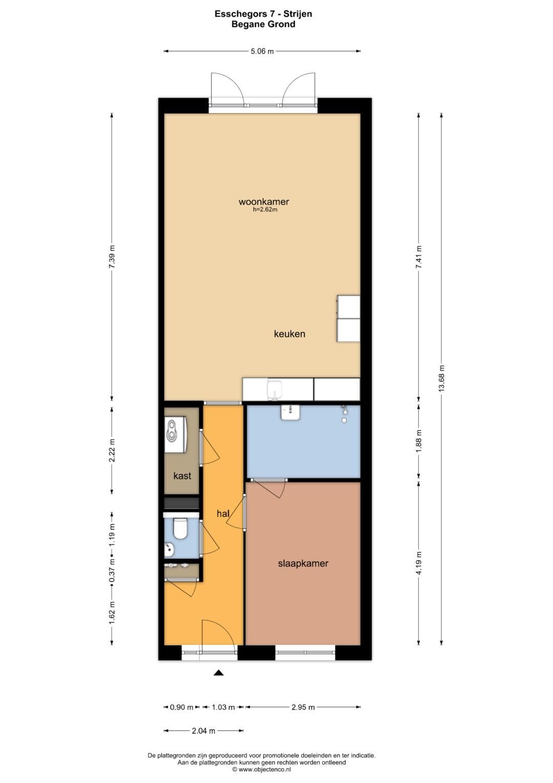 Via de entree komt u in de hal waar zich de meterkast bevindt, een separate toilet, technische ruimte en de slaapkamer welke directe toegang heeft tot de badkamer.