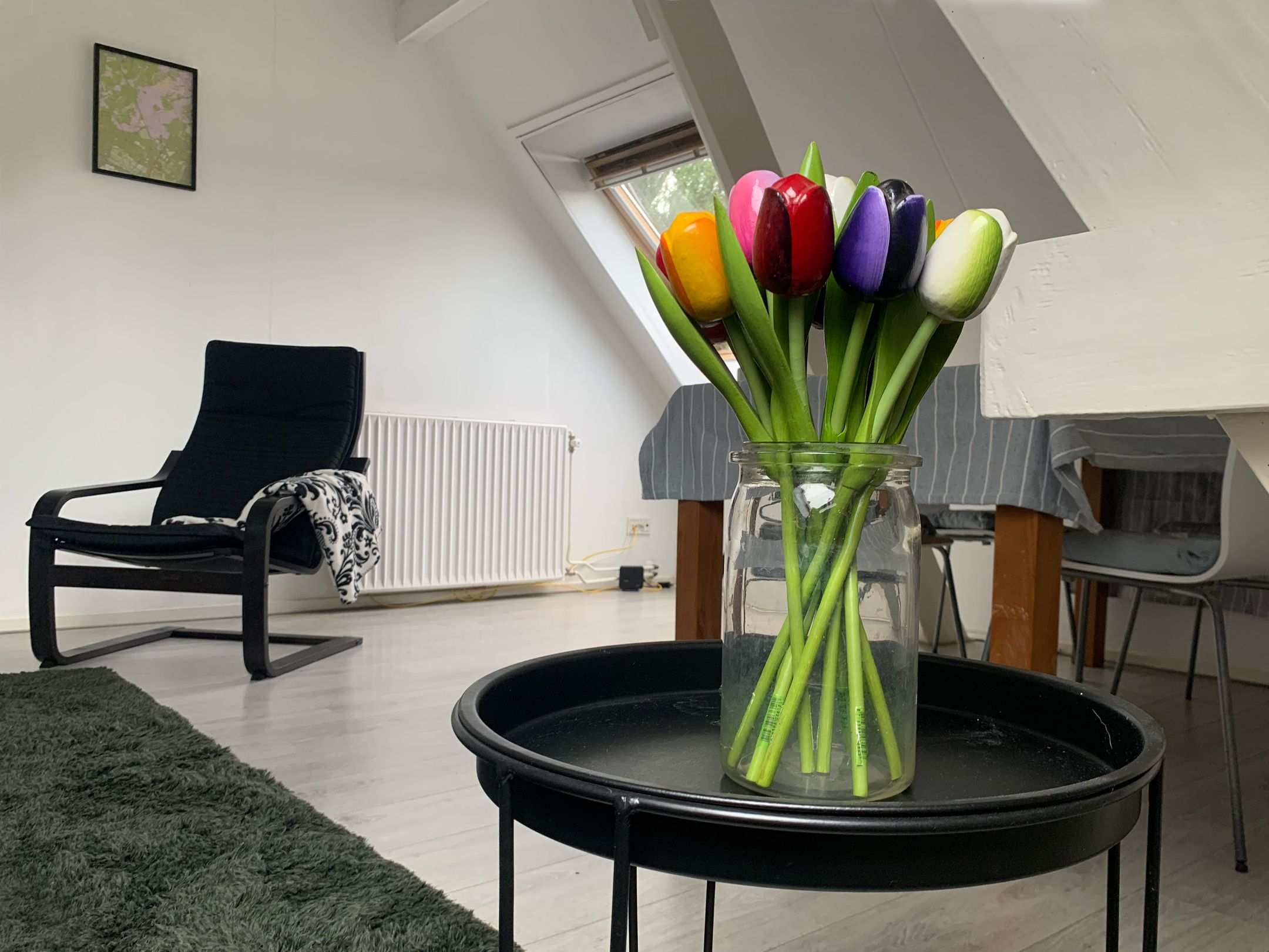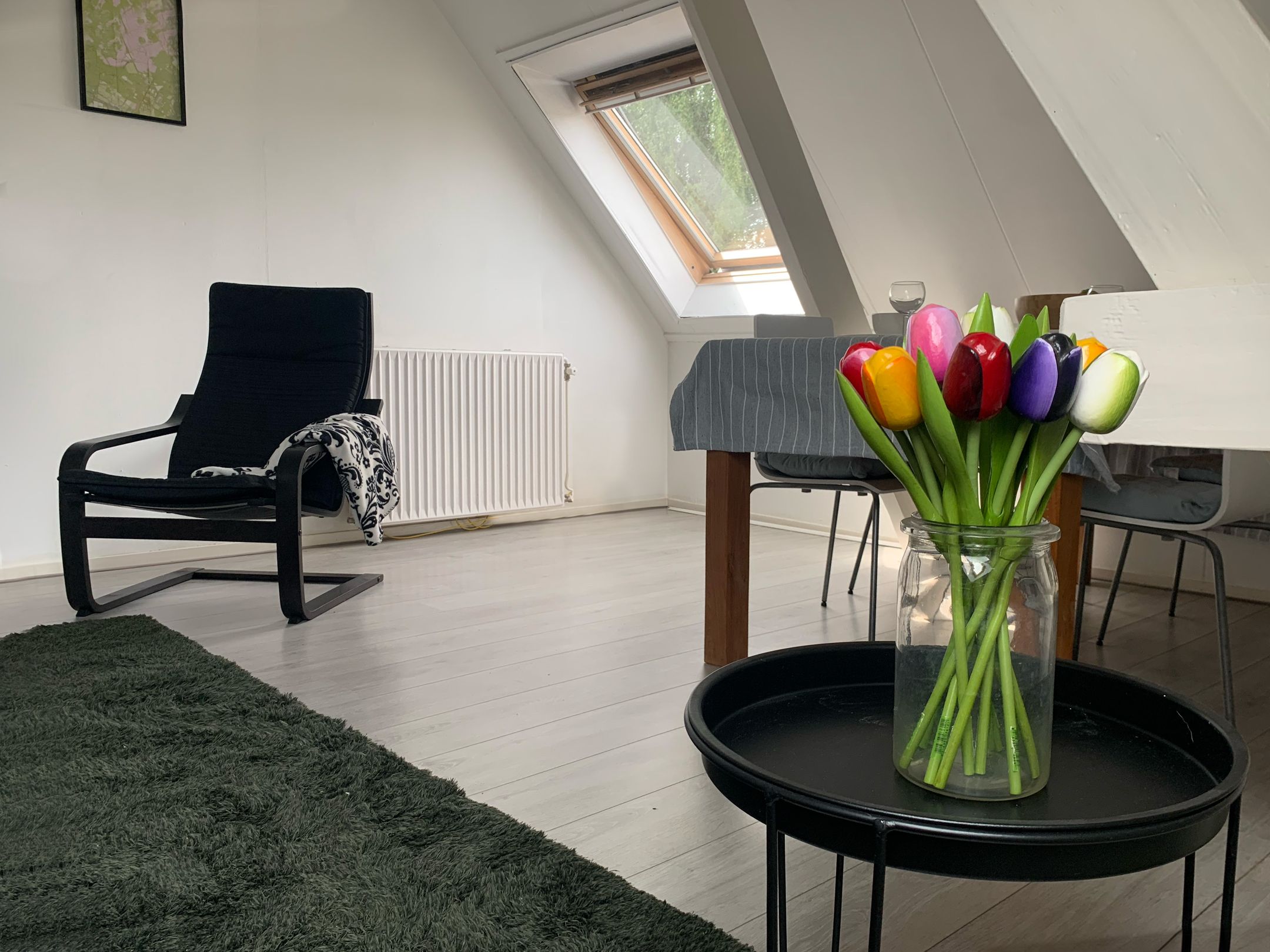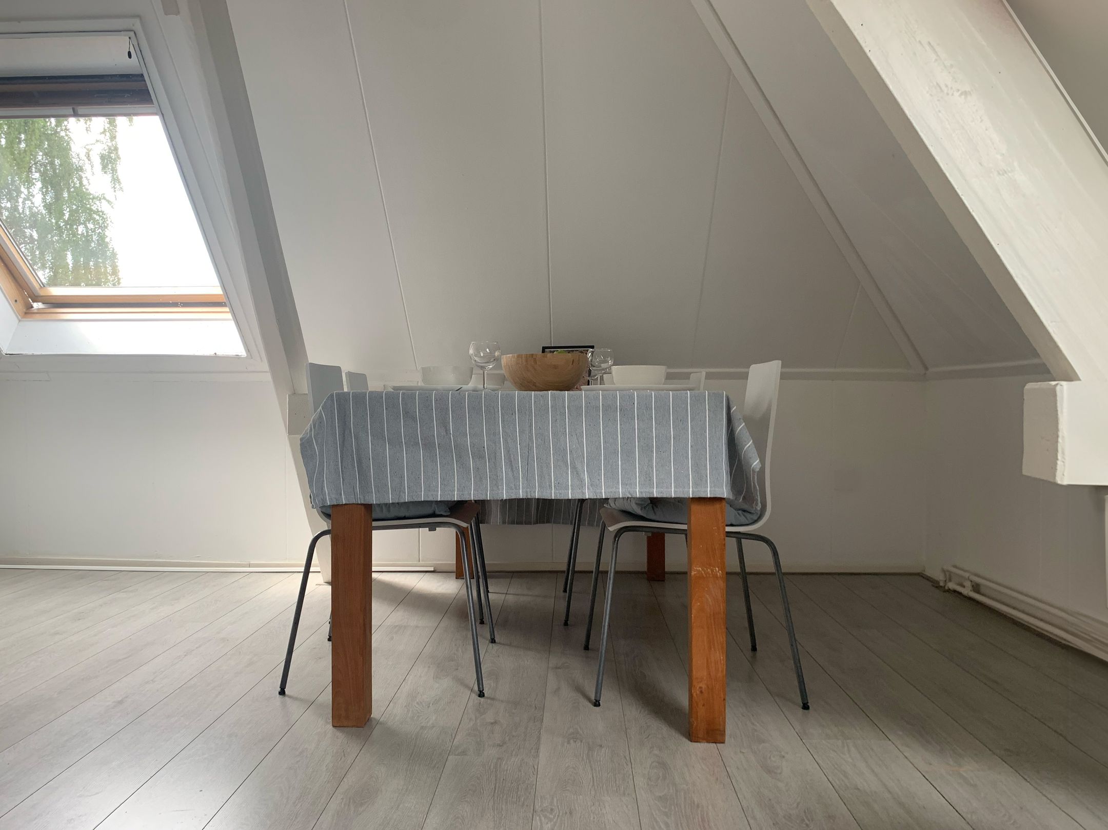 Dakramen op meerdere richtingen zorgen ervoor dat de woning de hele dag verandert. Ochtendlicht in de keuken, middaglicht in de woonkamer, avondlicht dat zacht binnenvalt richting de slaapkamer.