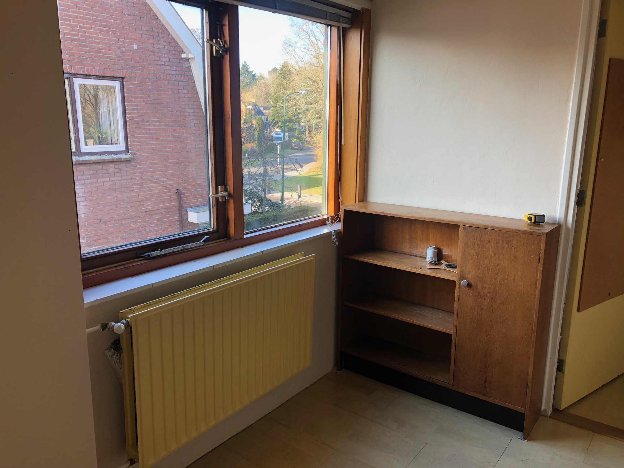 Jouw eigen kamer is klein maar er is een grote woonkamer met open keuken die je kan gebruiken en waar je een eigen plek krijgt..
