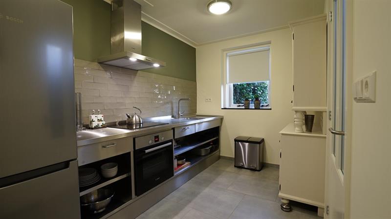 De badkamer is voorzien van wastafel, douche en toilet. Zowel de keuken als de badkamer zijn voorzien van mechanische afzuiging.